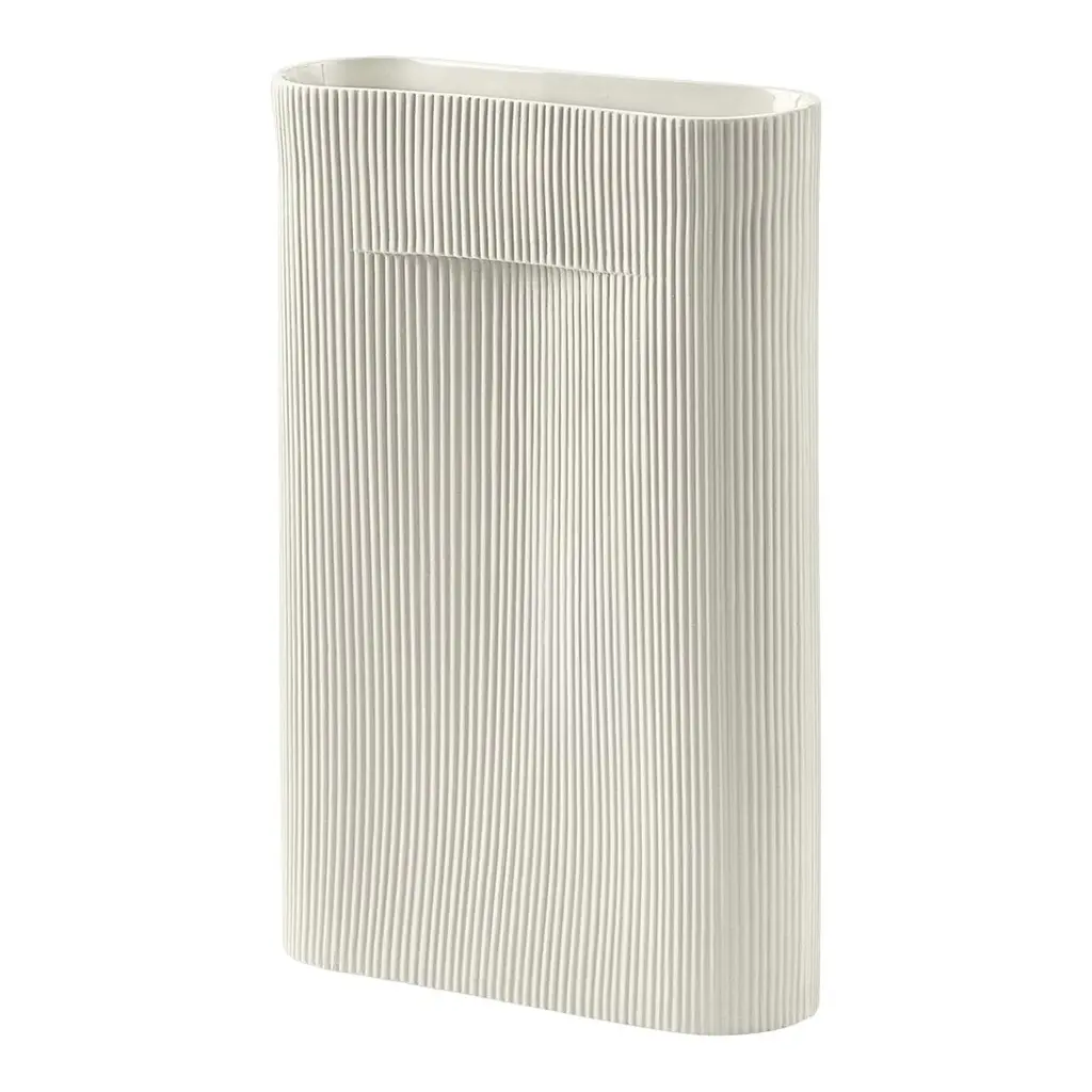 "The idea for the Ridge Vase came while traveling through different cities with a vase in mind, searching for details that had an architectural feel. Upon returning to our studio in Finland, we began sketching by hand and making mock-ups in paper and ceramics. With its vertical lines and unique shape, inspired by a doorway in Paris, the Ridge Vase presents a new way to place flowers through a modern expression along with a sculptural character when not in use. The Ridge Vase manipulates the oval form through its refined dent while adding the function of a small handle to use when moving the vase form one room to another." - Salla Luhtasela & Wesley Walters of Studio Kaksikko With references to its name, the Ridge Vase applies an added functionality through its refined dent, allowing for flowers to stand upright, while also working as a subtle handle when moving the vase from one room to another. The vase comes in two sizes, bring a distinct touch to any room. Place the Ridge Vase in a windowsill, on the floor or side table for a characterful design object that is unique in both its function and expression.