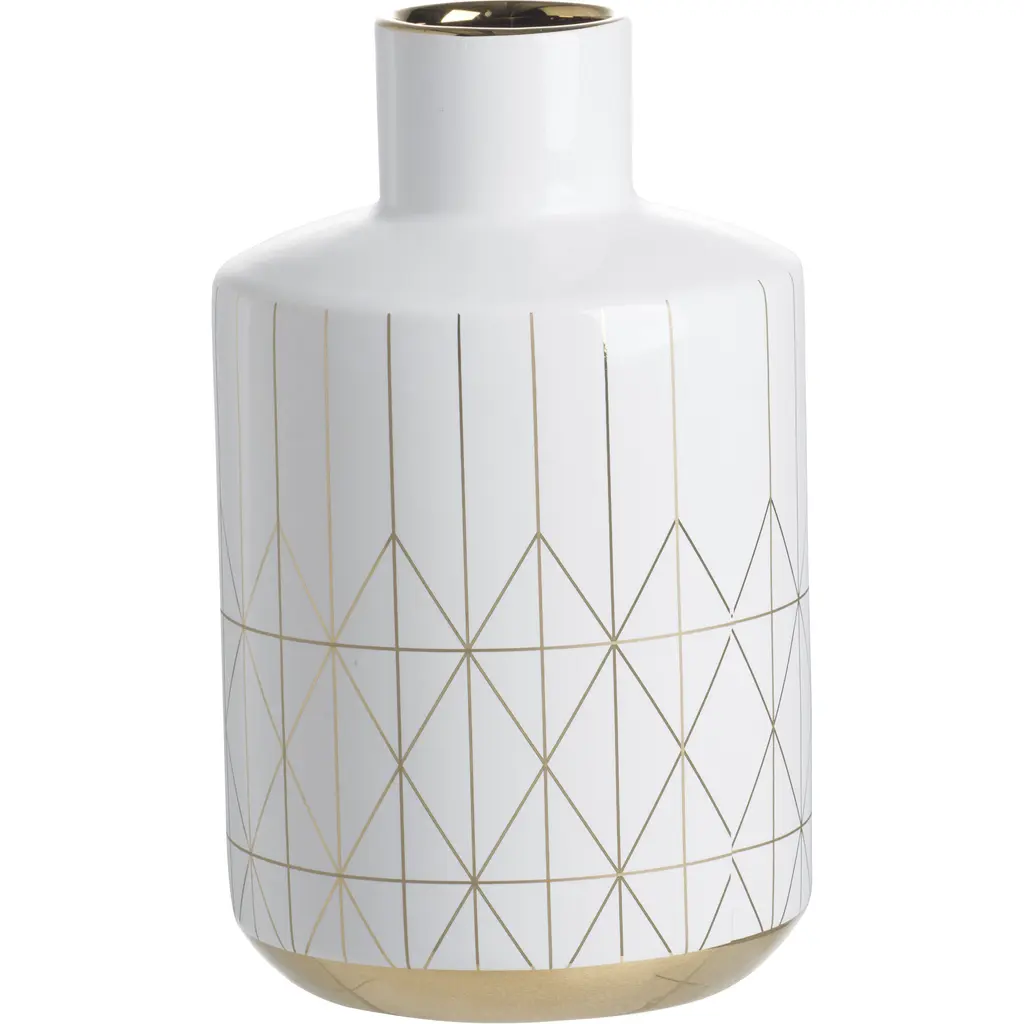 Charmingly refined and minimalist at the same time, this glorious vase will make a sublime addition to a personal design and art collection to display in an elegant and luminous contemporary interior. Entirely handcrafted of fine white porcelain, it features a simple yet polished shape adorned with minutely painted stripes and rims in pure gold.