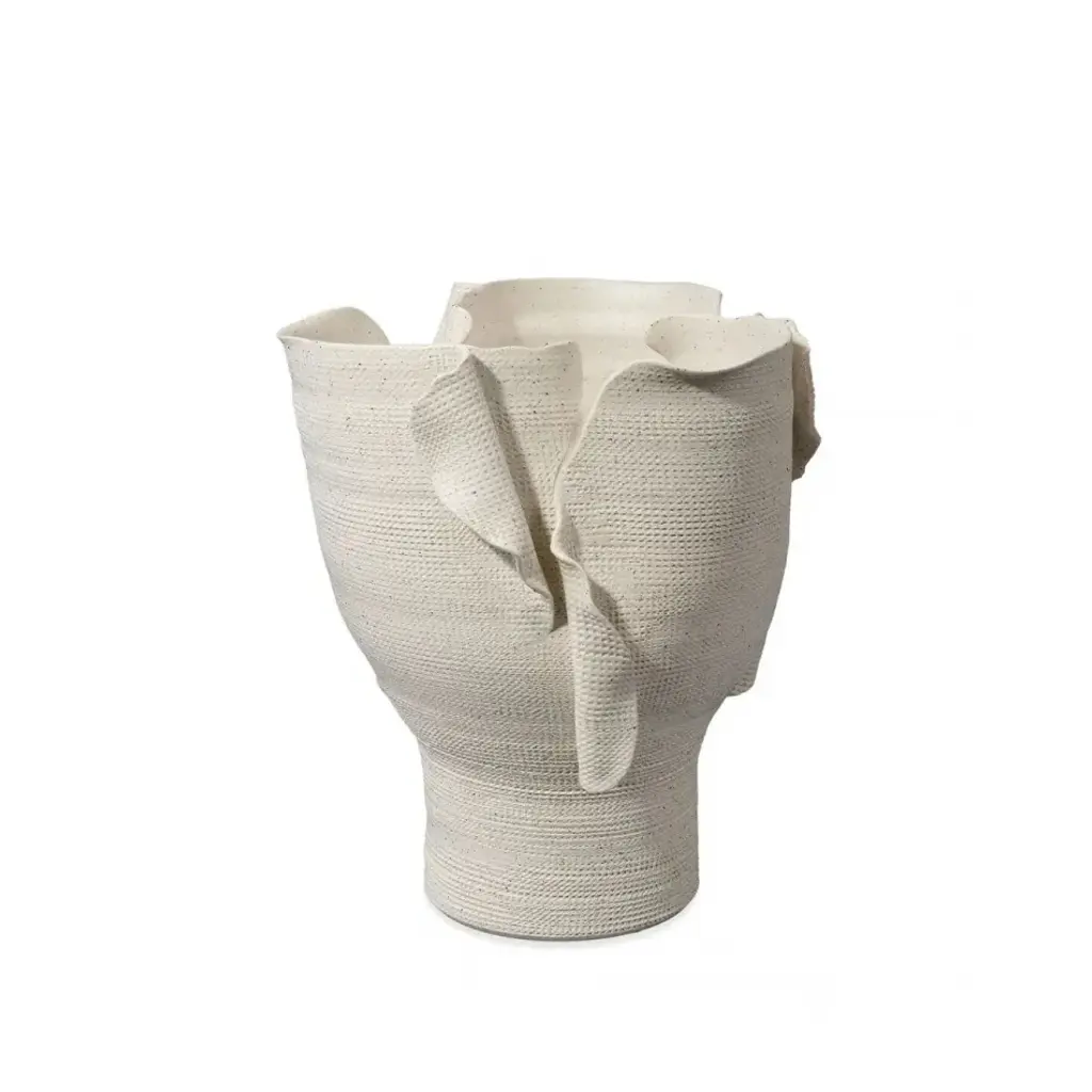 A Stunning Duo Of Sculptural Vases With Fluid, Ruffled Edges, Evoking The Beauty Of Natural Movement. Crafted In A Crisp White Finish, These Statement Pieces Bring An Artistic And Modern Touch To Any Space. Sizes: S-8x11x6, L-8x14x6