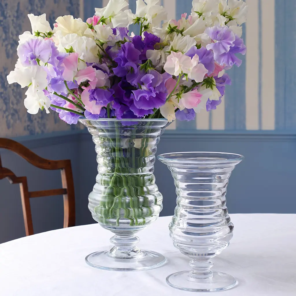 Create a beautiful flower arrangement with the Ripples Vase from Willian Yeoward Crystal, featuring a sturdy footed base and a ripple effect in the glass design that is both contemporary and fun.