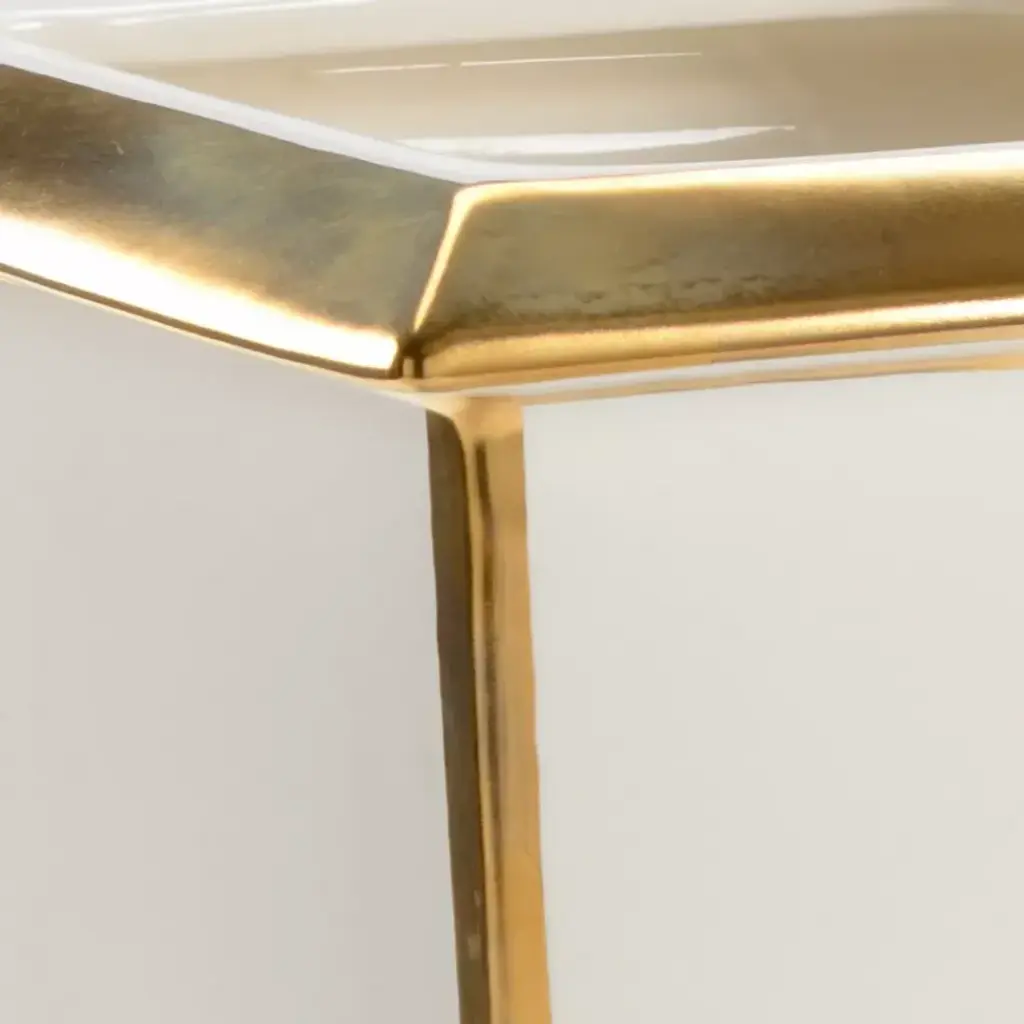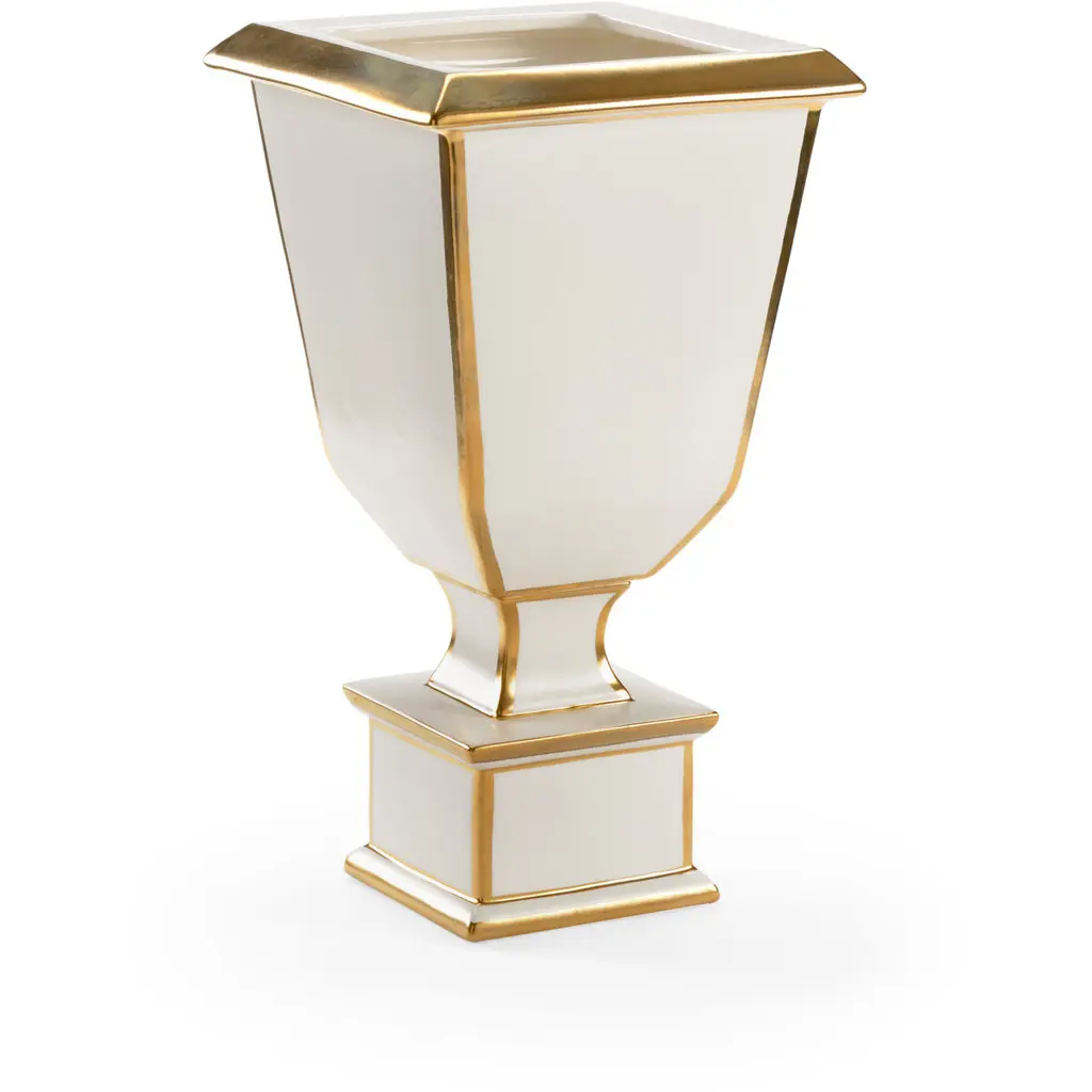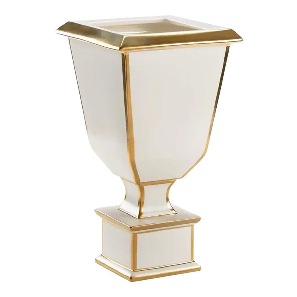 Classical Decorative Urn In White With Metallic Gold Accents. For Decorative Use Only.