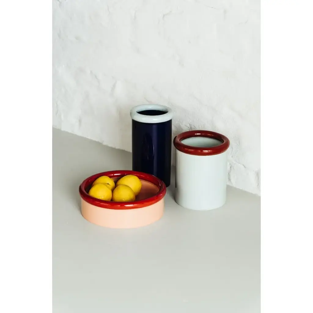 Nine's Rod vase pays homage to traditional pottery and ceramic techniques. Designed by Julien Renault, the vase gets its unique character from the combination of two harmonious tones, offering a simple yet striking vessel for storing flower bouquets, kitchen utensils or paintbrushes. The hand-crafted and glazed pots, vases, and bowls of the Rod collection stand out as individual decorative pieces but also blend beautifully when paired together.
