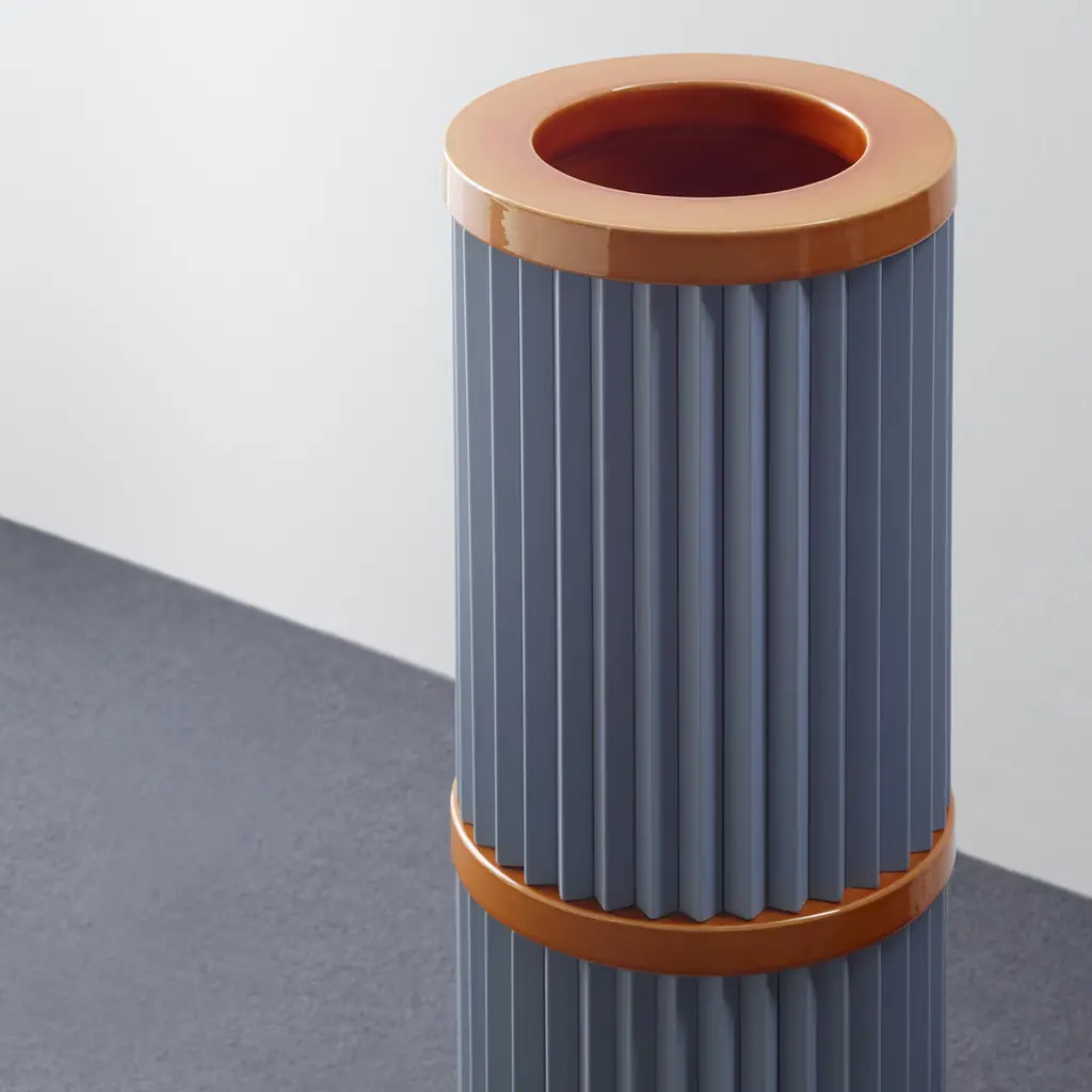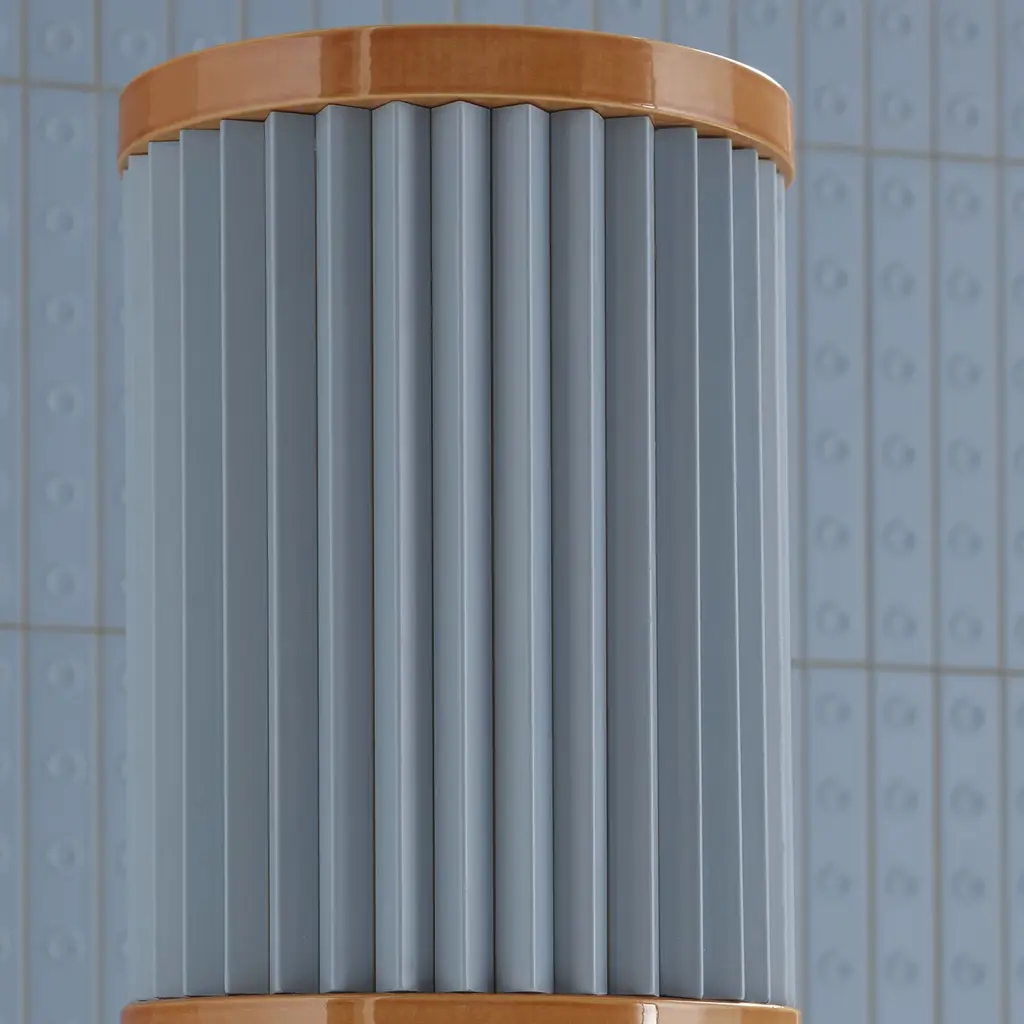 Part of the exclusive Rombini series of ceramic vases designed by Ronan & Erwan Bouroullec and handmade in collaboration with Bitossi, this sculptural ceramic piece is distinguished by a sophisticated chromatic choice of a matte light blue tone, combined with a glossy brown shade. simple aesthetic. Available in a wide range of colors and compositions, please consult the Artemest catalog for options.