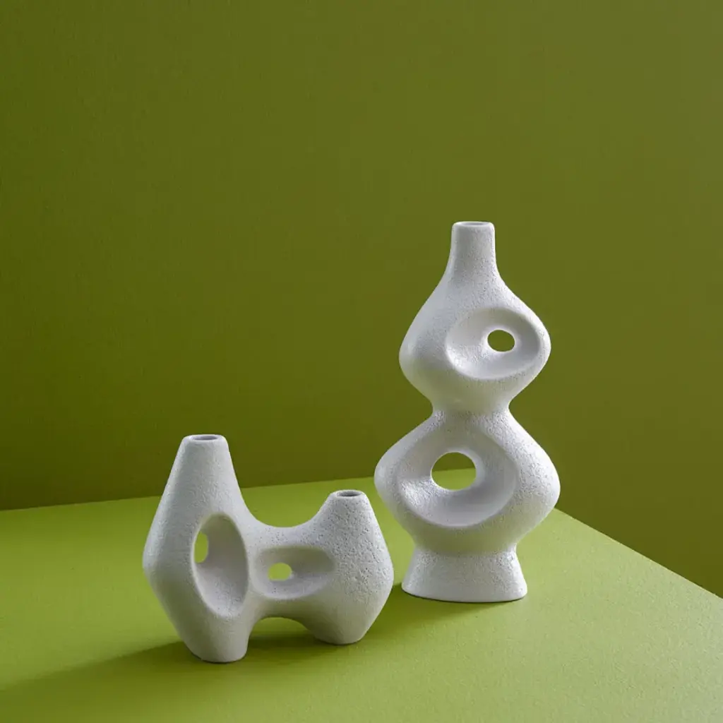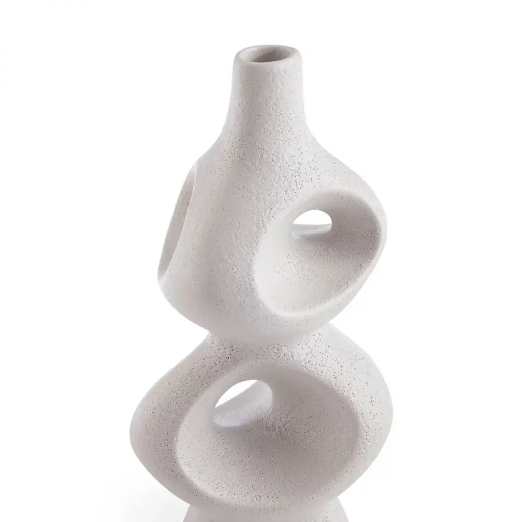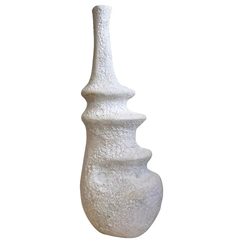 Softly Sculptural.Inspired by the soaring organic modernist architecture of Le Corbusier's Ronchamp chapel, these vases feature soft curves accentuated with a deep and bubbly, white lava glaze. An intriguing addition to any tablescape or alone with a single stem.