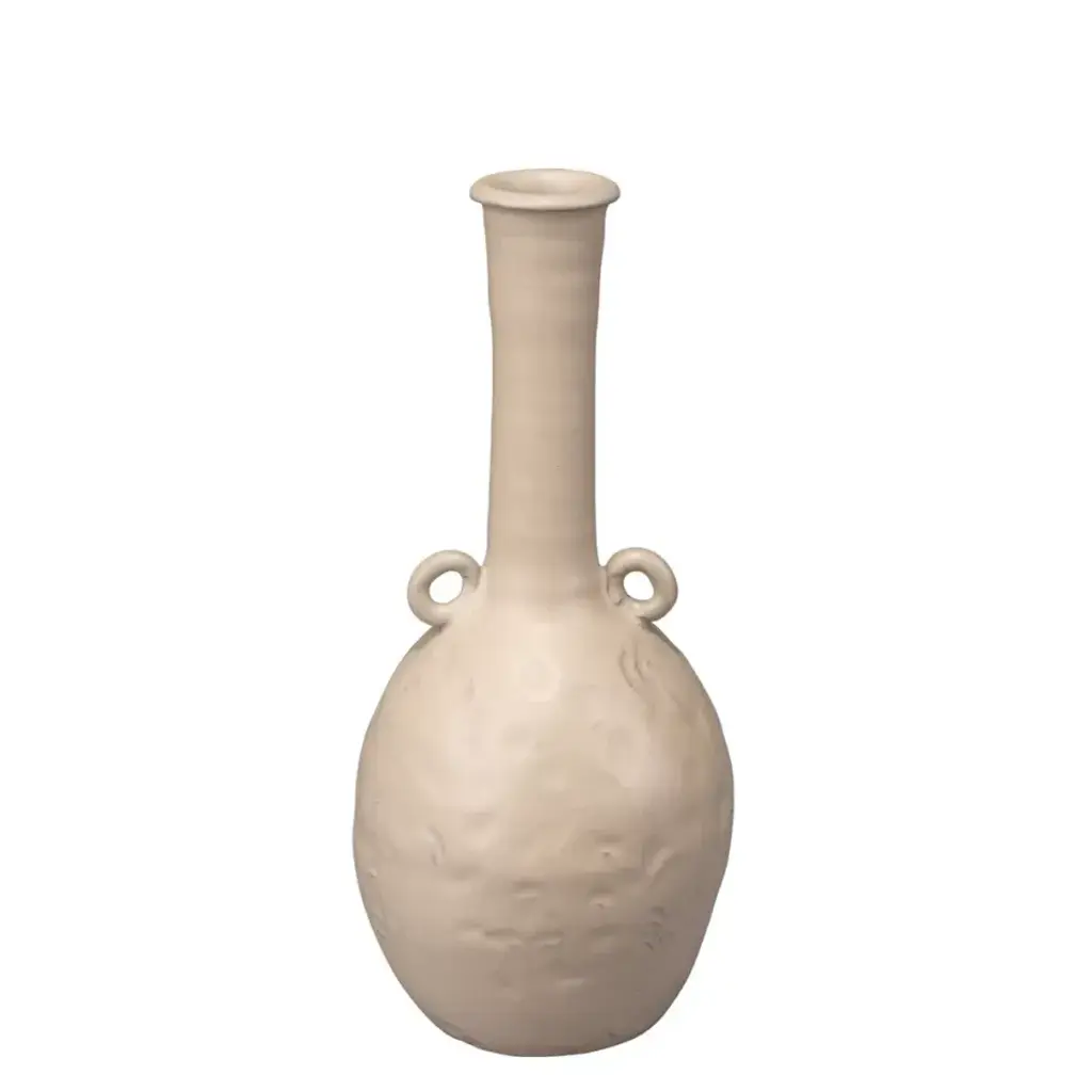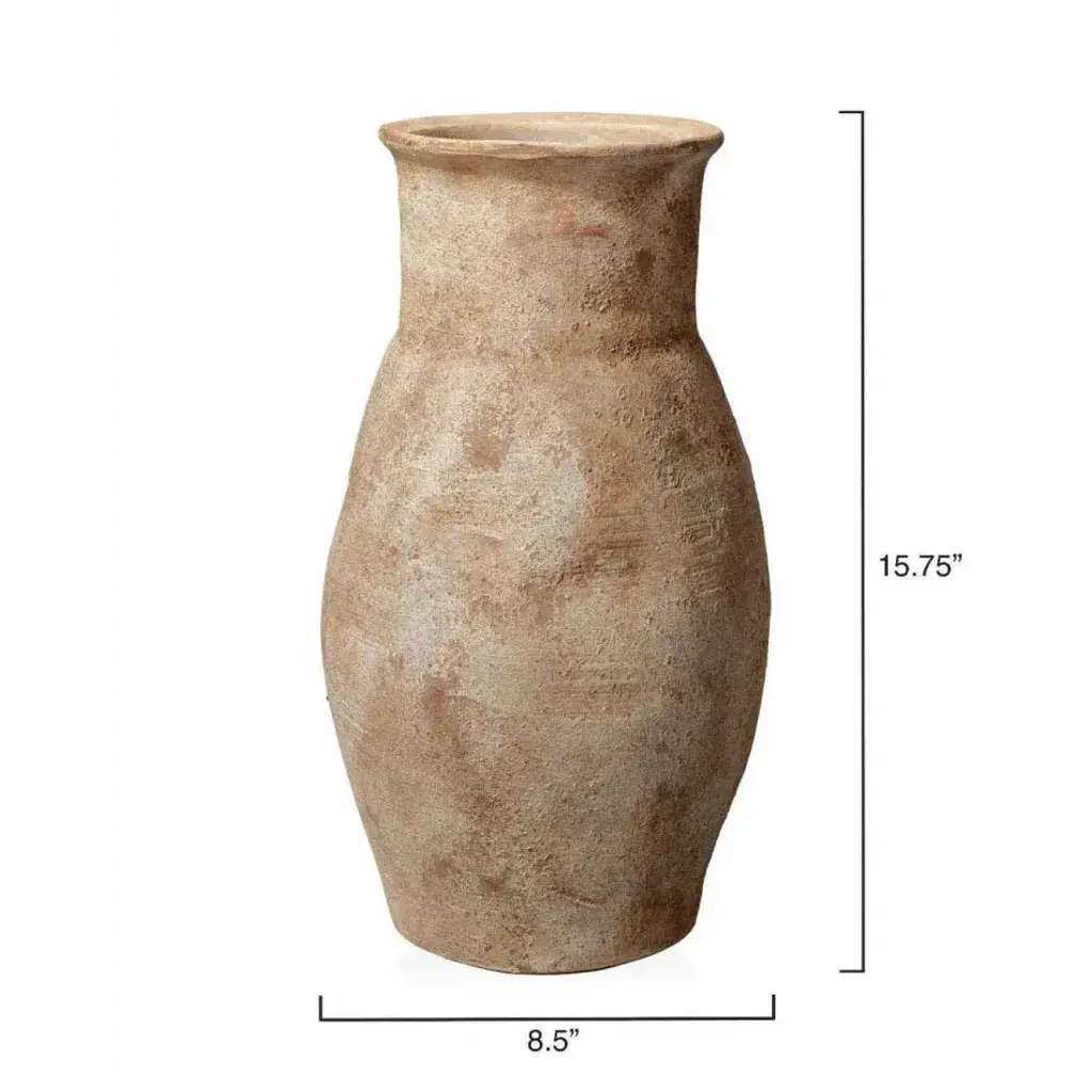 At once rustic and refined, this decorative vase adds a timeless accent to any tabletop. Carefully crafted by hand of ceramic and given a weathered surface effect to create the look of a vintage find and varies with each piece for one-of-a-kind beauty.