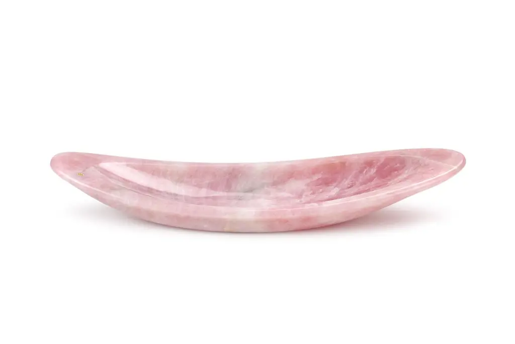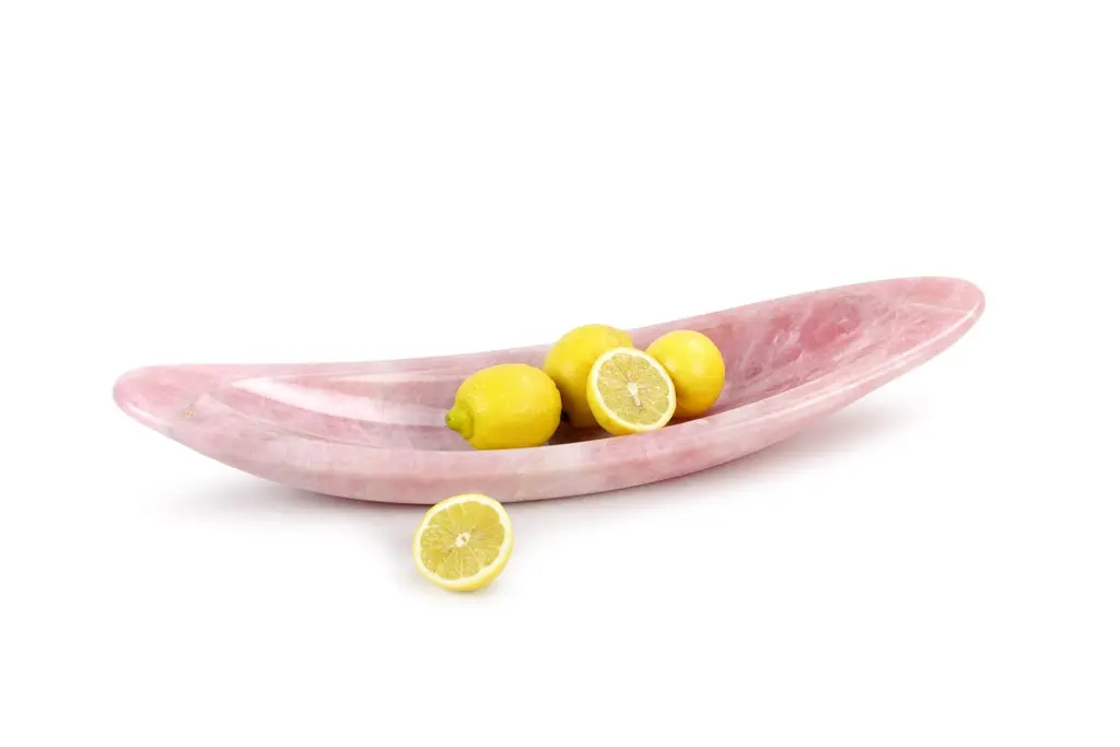 Rose Quartz Sculpture Long Bowl Decorative Centerpiece Hand-Carved Pink Vase