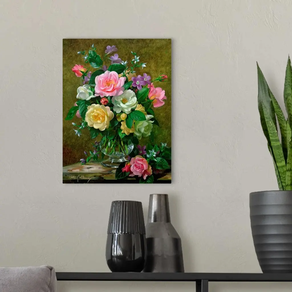 Roses in a glass vase wall art for home and office decor. Discover canvas art prints, photos, mural, big canvas art and framed wall art in GreatBigCanvas.com's varied collections.