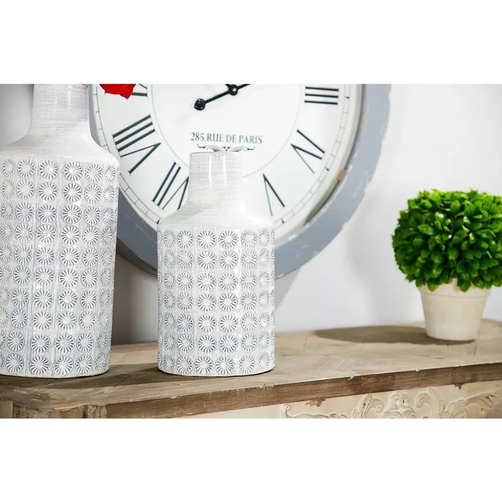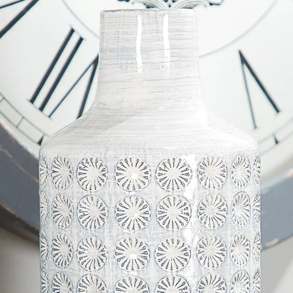 Round Ceramic Floor Vase with French Country Rosette Design Blue/White - CosmoLiving by Cosmopolitan