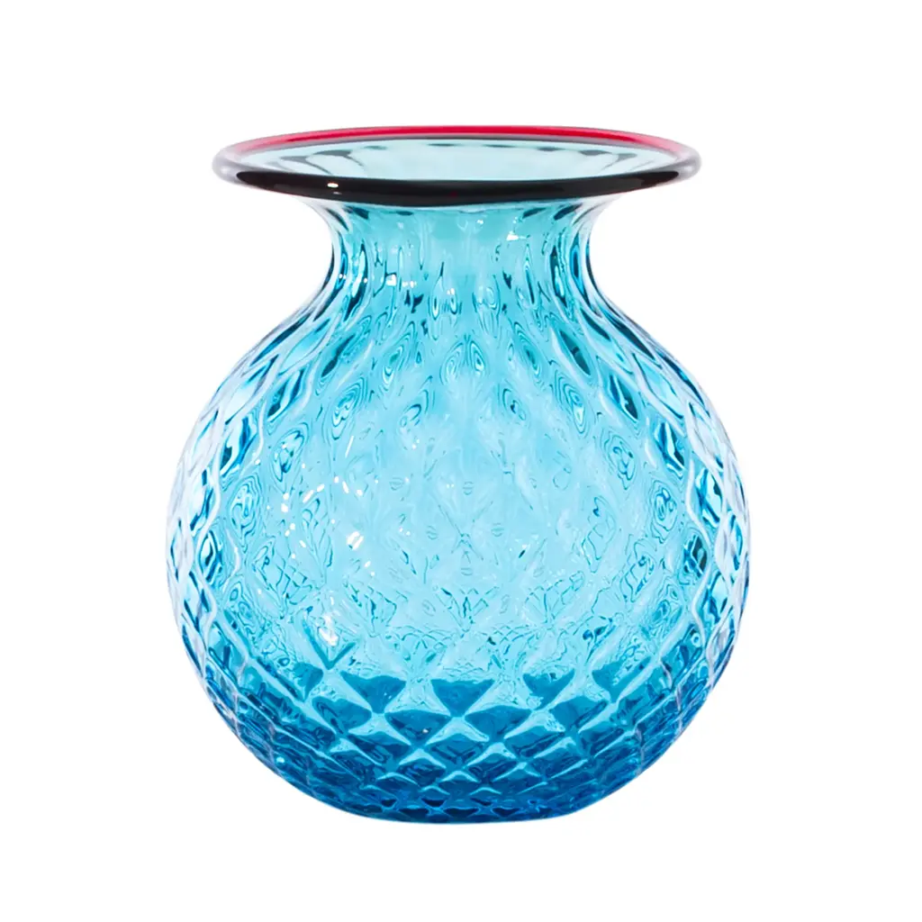 Elevate your home decor with our iconic Venini Fiori Round Glass Vase. Handcrafted in Murano, this exquisite vase showcases delicate glasswork and adds a touch of sophistication to any space. A must-have for art lovers and connoisseurs of elegant design.