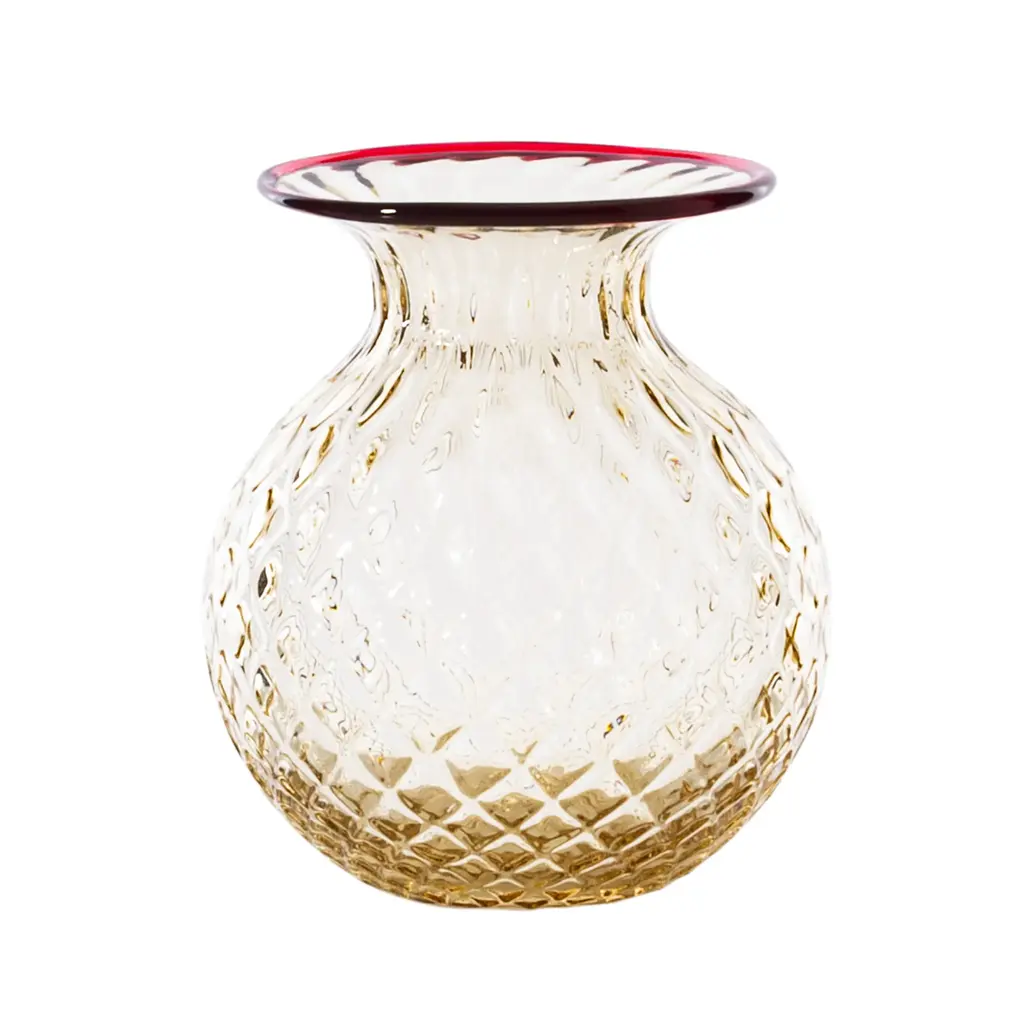 Elevate your home decor with our iconic Venini Fiori Round Glass Vase. Handcrafted in Murano, this exquisite vase showcases delicate glasswork and adds a touch of sophistication to any space. A must-have for art lovers and connoisseurs of elegant design.