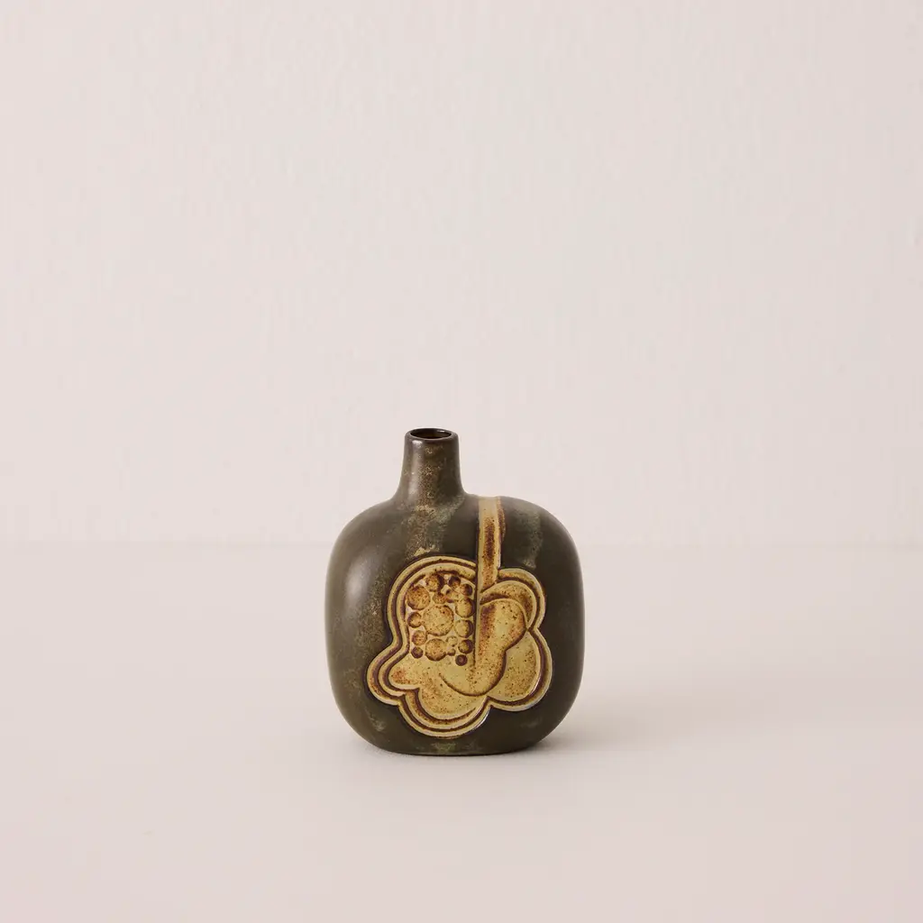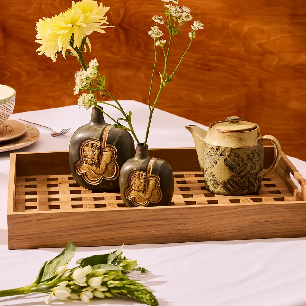 A vase with presence, yet an object of quiet beauty. The Round Plant Relief Vase by Kashiwa Craft strikes the perfect balance between organic elegance and intricate craftsmanship, drawing the eye with its graceful form and embossed botanical relief. Handcrafted from Seto’s native red clay, its rich indigo glaze and unique variation in color resulting from the intensity of the flames make it a captivating accent, whether styled with a single stem or displayed on its own. * Due to the handmade nature of the product, variations in color, shape, size, thickness, weight, pattern, small black spots, paint skips, and unpainted pinholes may be observed. However, these differences do not affect the functionality of the product.