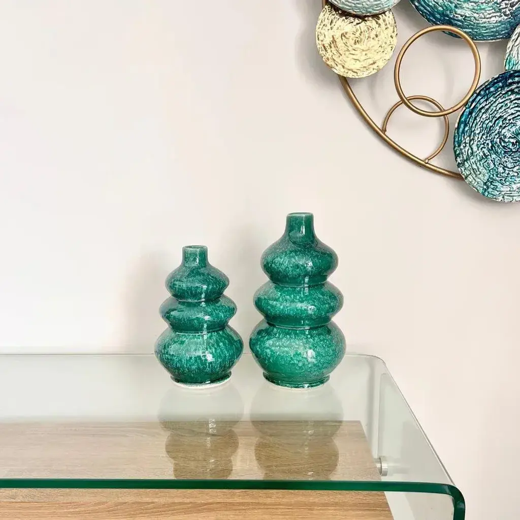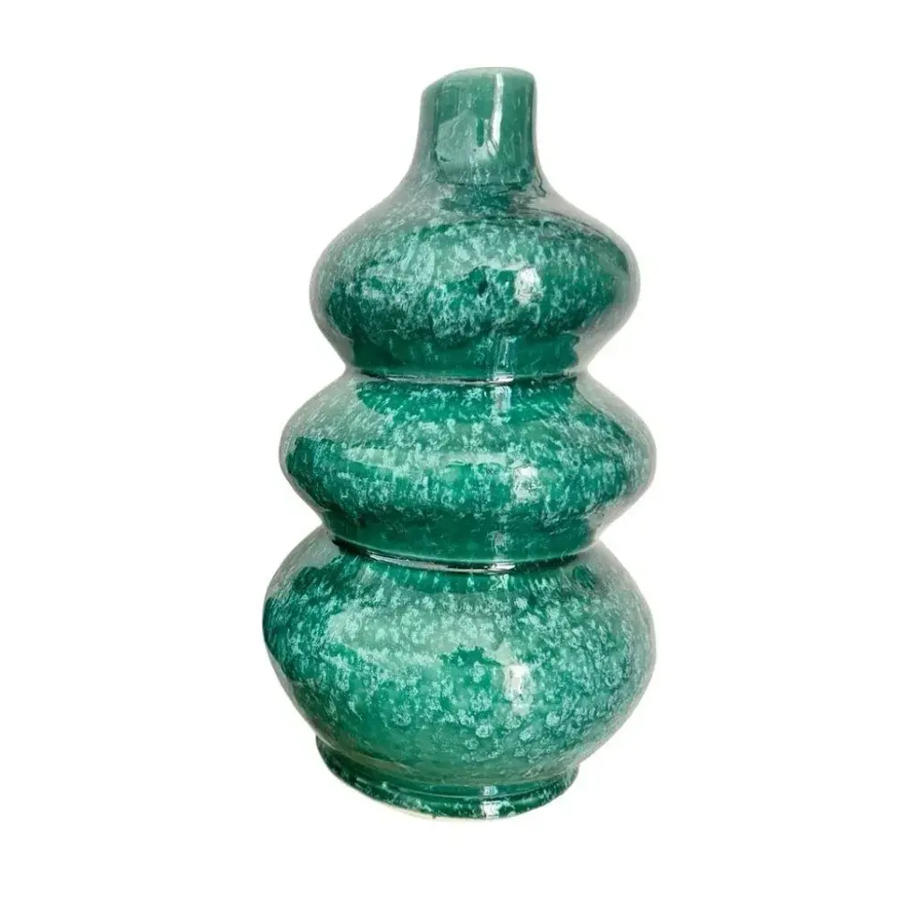 The rich and soothing shade of this vase adds a touch of freshness to your space. The painted finish gives a delicate shine and highlights the handmade details of the ceramics. This vase embodies natural beauty and authentic craftsmanship, creating a piece that captures the essence of serenity. Our products are completely handmade by talented craftsmen in the ancient city of Marrakech. Their artisanal character can cause minor flaws, making each piece a unique and original work. Appreciate the essence of Moroccan craftsmanship Measurements Width 13 cm 5,11811 inches Height 30 cm 11,811 inches Width 10 CM 3,93701 Height 25 CM 9,84252 We offer free and fast shipping to all over the world.