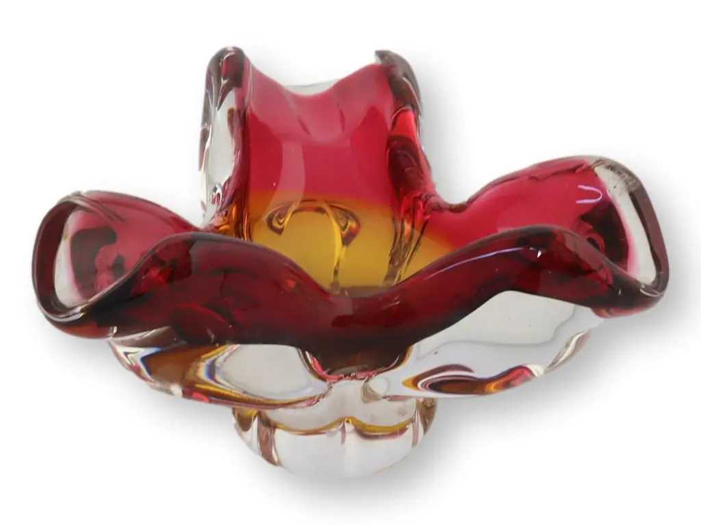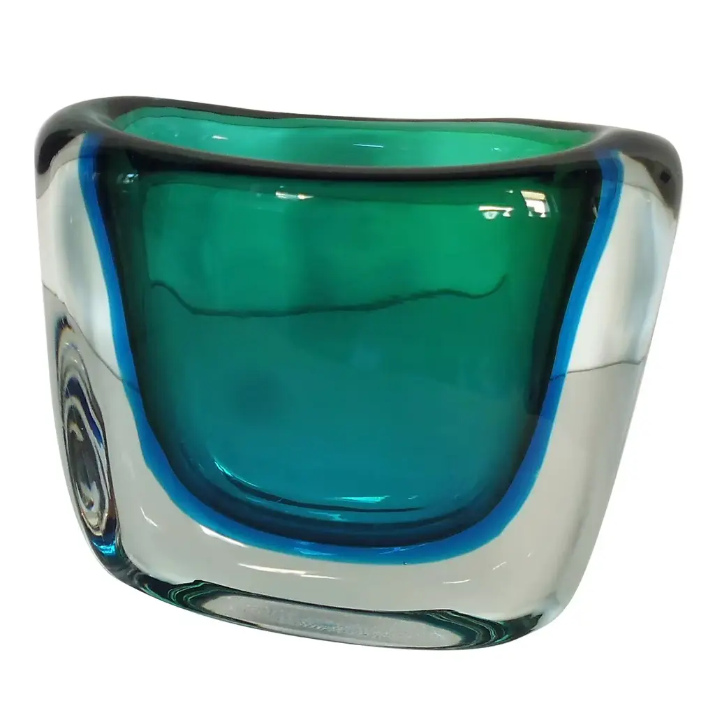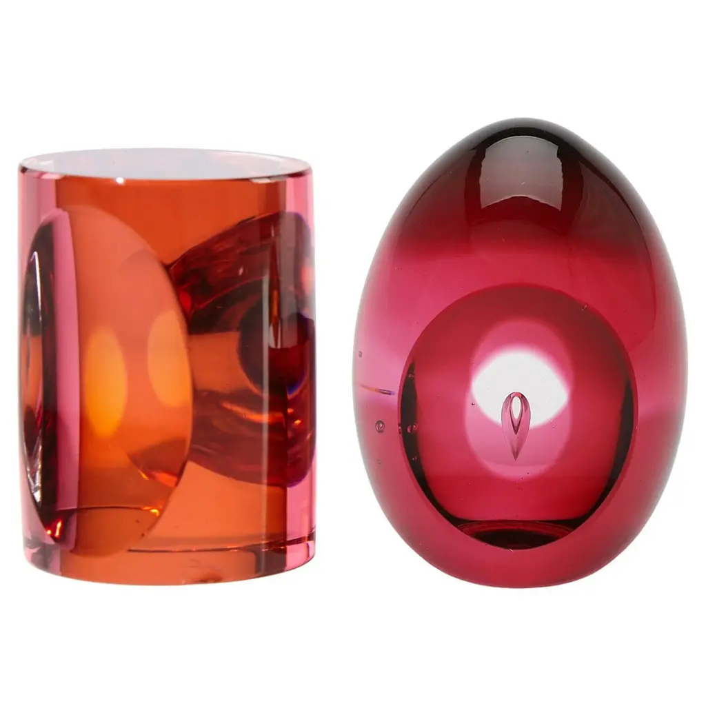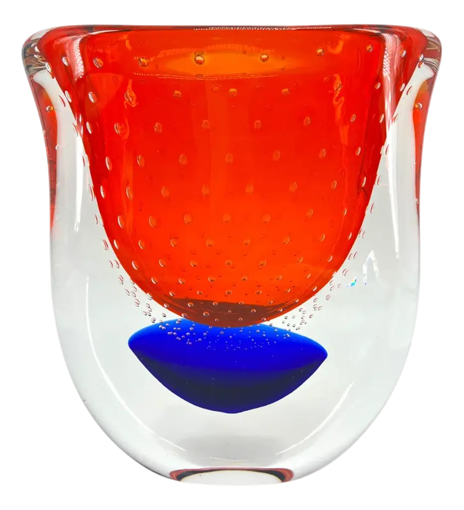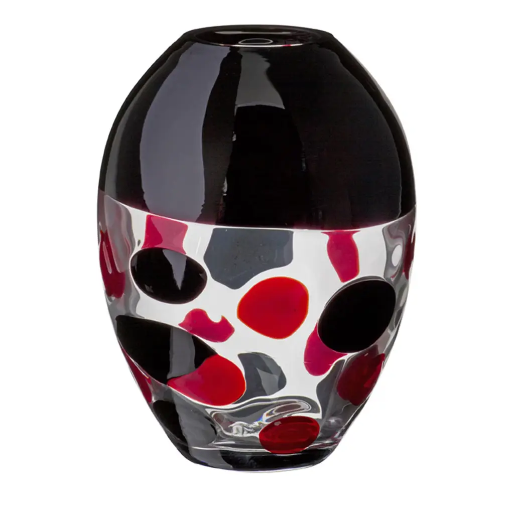 Enhance your home decor with this small and petite finely crafted mouth-blown glass vase. Its unique smooth irregular rectangular shape in transparent crystal delicately encloses a glaze ruby pink core. Dedicated to bringing a touch of contemporary elegance in your space, this statement piece will look stunning with or without flowers.