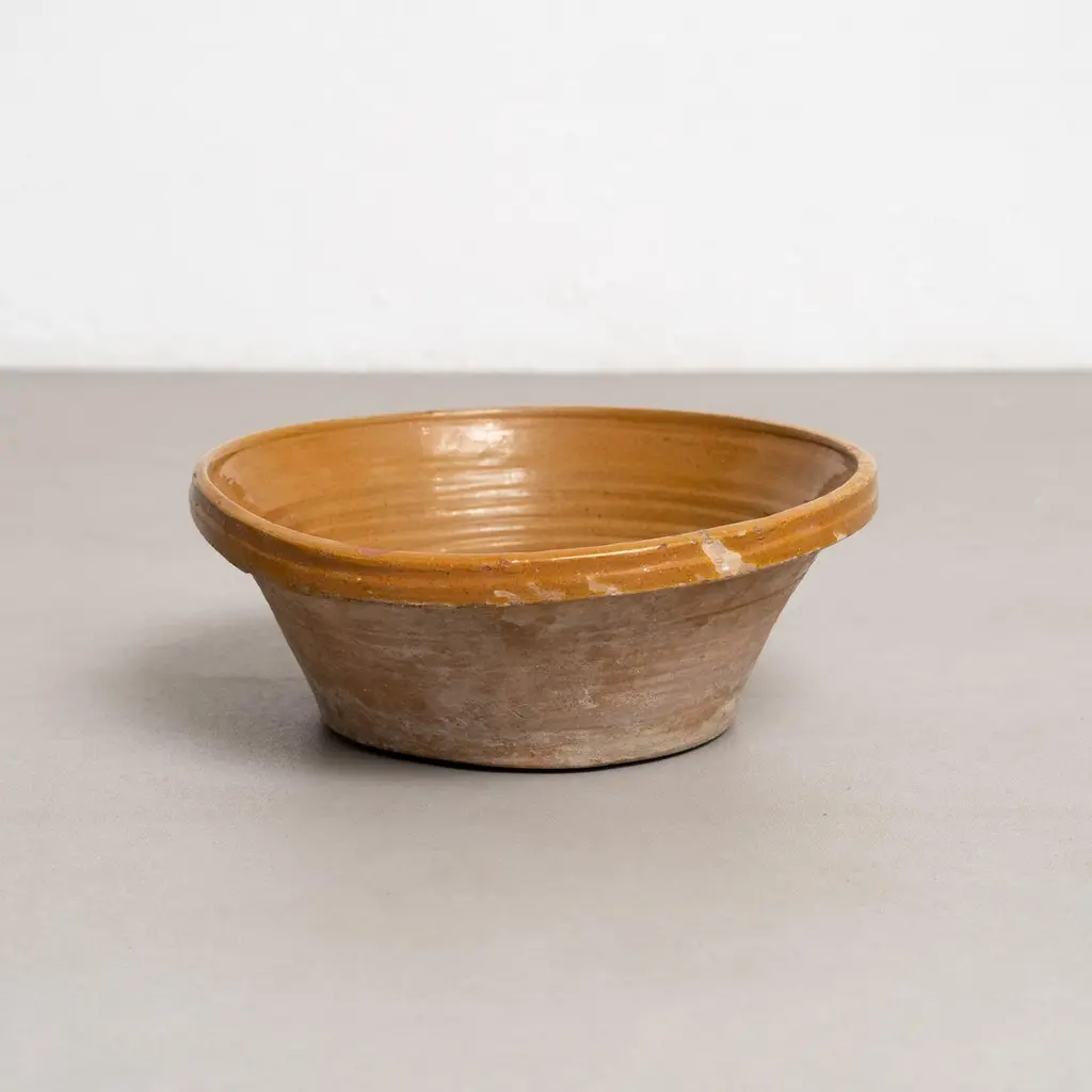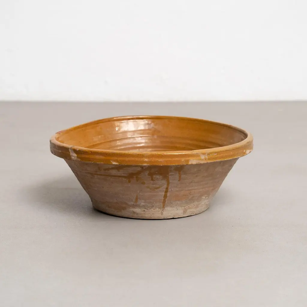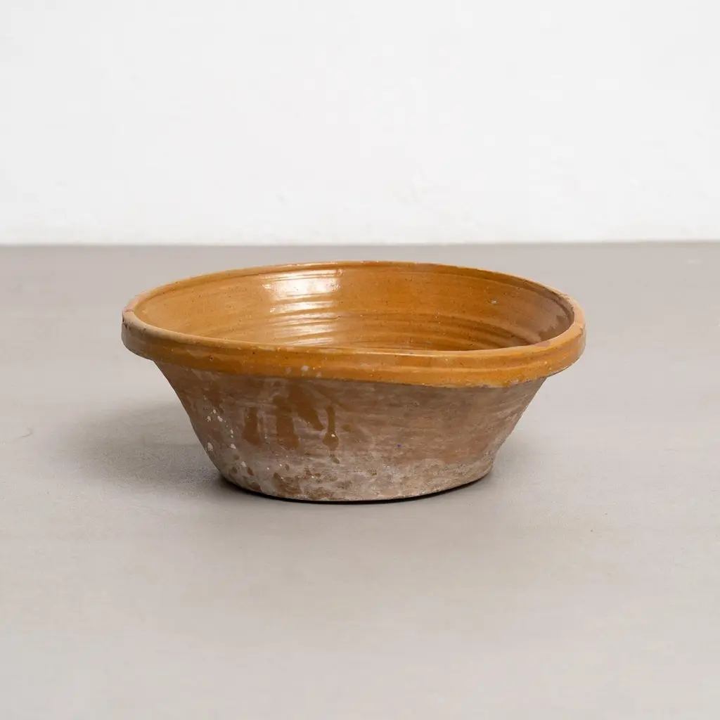 Rustic Ceramic Plate Vase – Early 20th Century, Circa 1940This rustic ceramic plate vase, crafted around 1940 in Spain, is a traditional piece that reflects the classic craftsmanship of the era. Its sturdy and functional design makes it an excellent example of early 20th-century ceramic production. Though the manufacturer is unknown, the quality of this piece makes it ideal for antique collectors or anyone seeking authentic rustic decor.Preserved in its original condition, the plate vase shows minor wear consistent with its age, which has developed into a charming patina that enhances its authenticity and historical character. Measuring 15 cm in height, 41 cm in width, and 43 cm in depth, it is well-suited for various decorative uses in any space, bringing a touch of tradition and rural style.