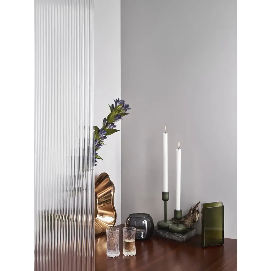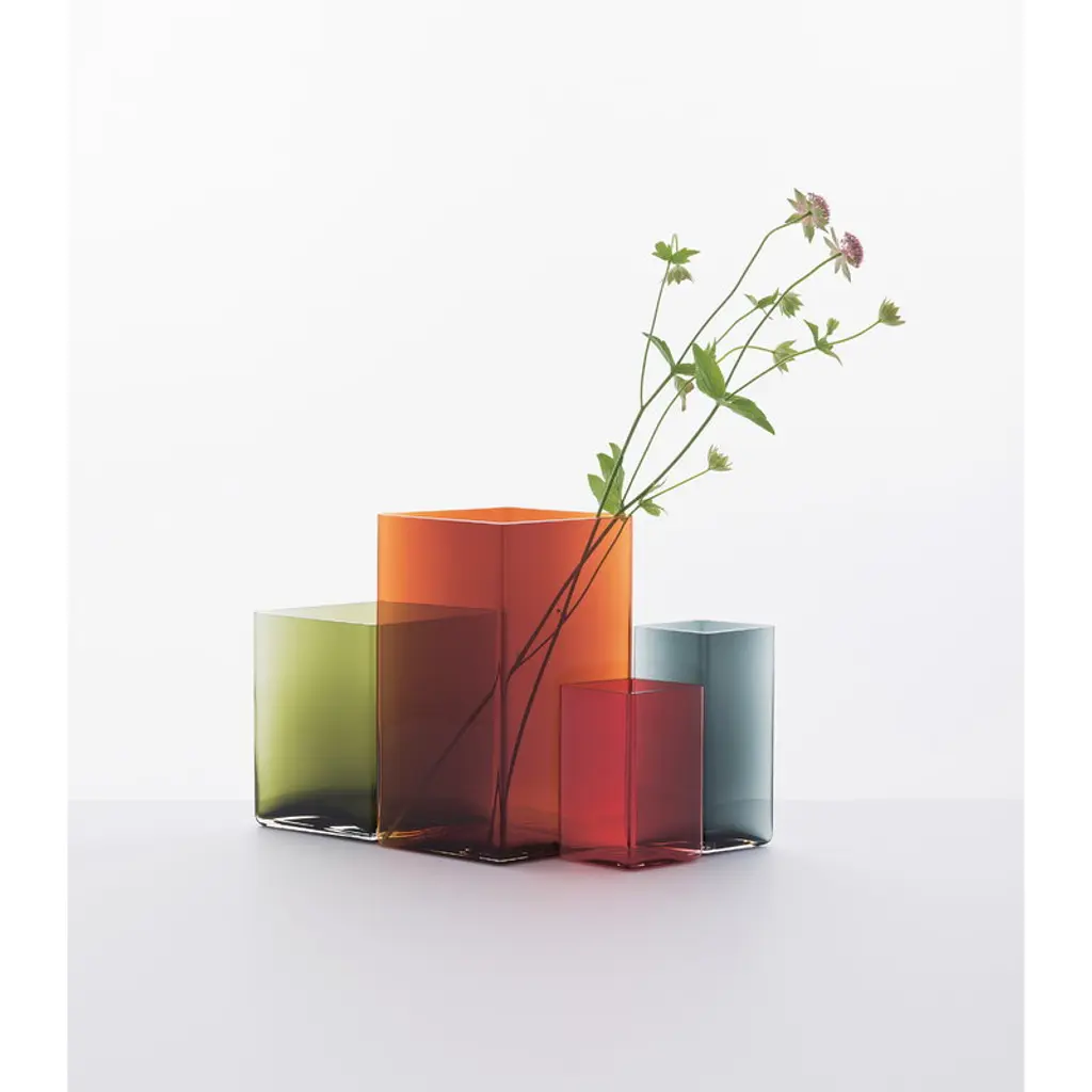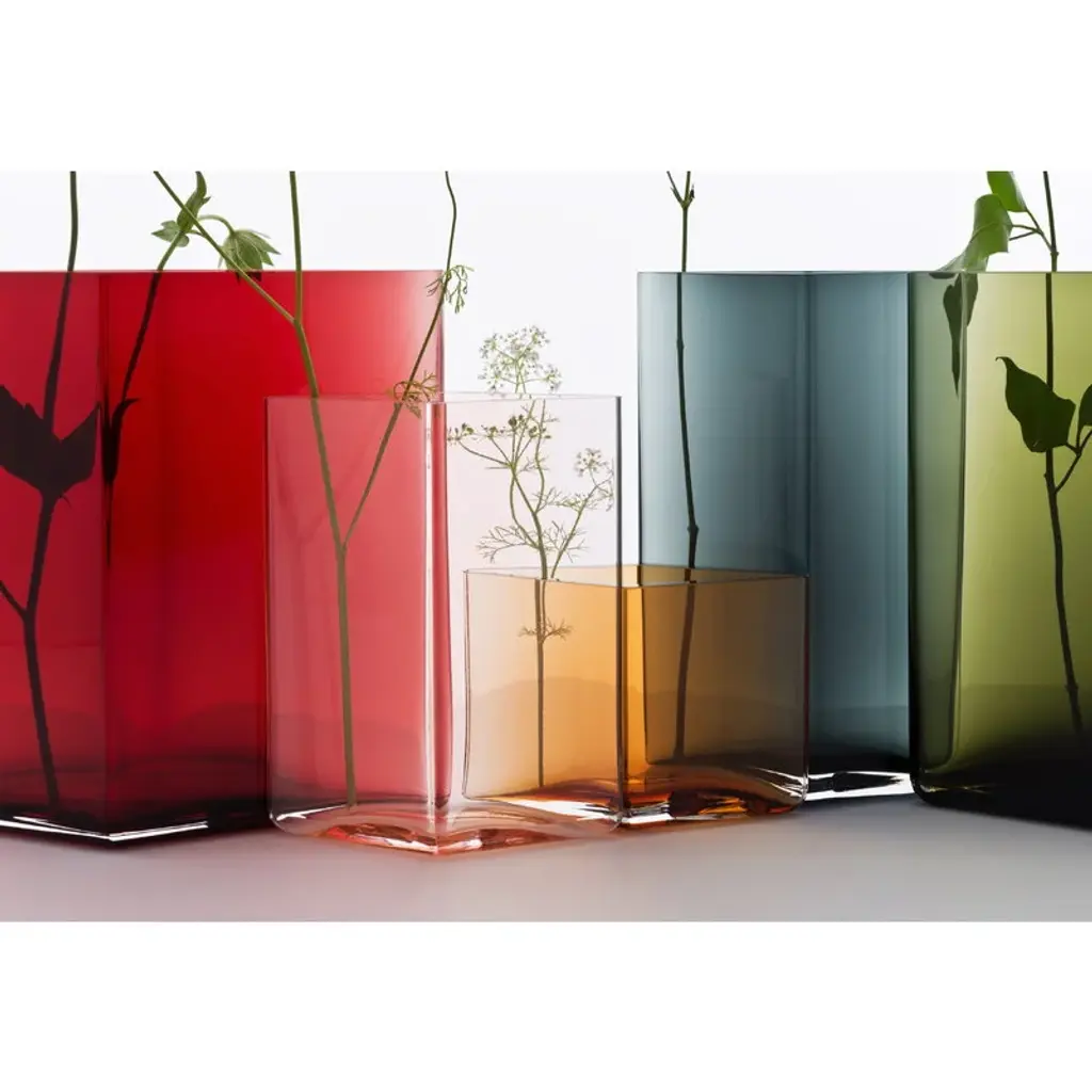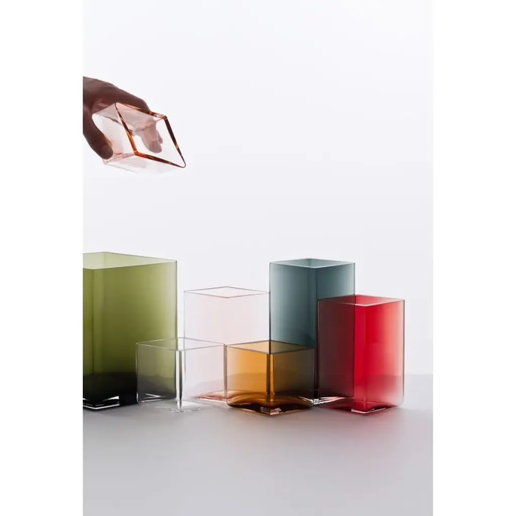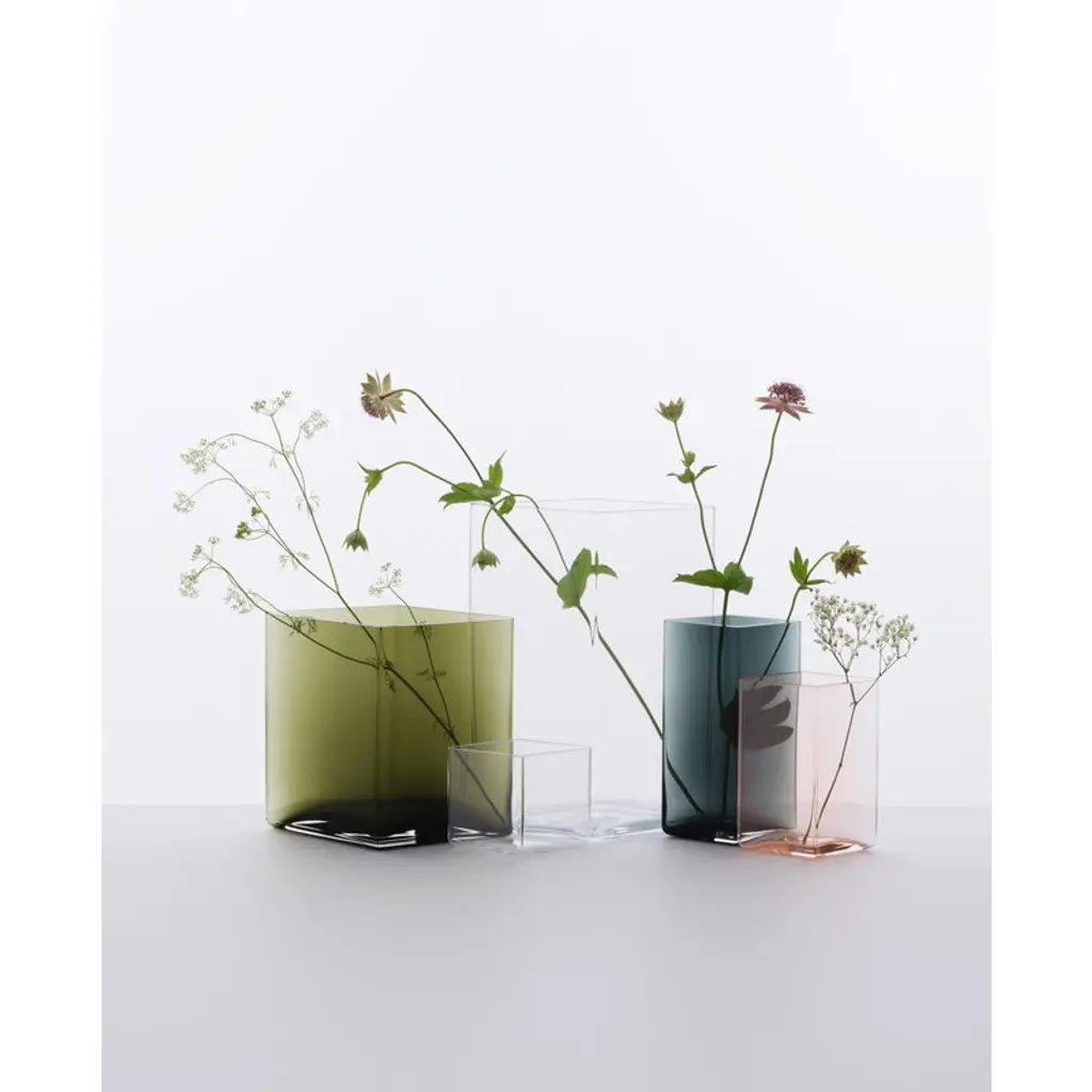 The French brothers Ronan and Erwan Bouroullec designed the Ruutu vases for Iittala. Each Ruutu piece is unique: they are mouth-blown into a steel mold and then polished by hand. The difficult shape of the vase requires 24 hours of production and seven skillful professionals.