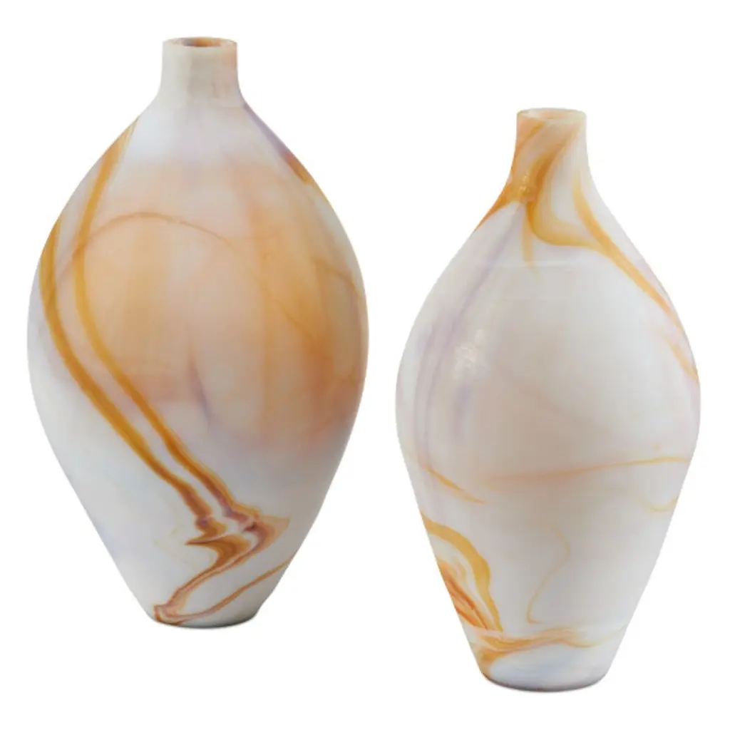 S/2 Gobi Glass Vases, White/orange