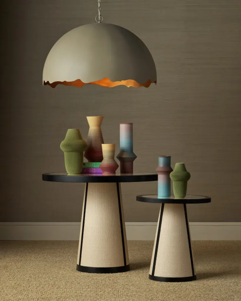 The Happy 80s Vase Set is a throwback to the decade when bold, vibrant, and eclectic ruled the stylistic spectrum—from interior design to fashion. Made of porcelain, the glazes on the exteriors of these vessels will vary because they are applied while the vases are spinning. This brings the two works of art a textural feel. The insides of the vases are covered in a black glaze and the shapes of the vases reflect the nuances of the decade after which they are named.