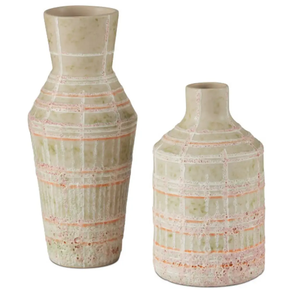 S/2 Riso Ceramic Vases, Cream/green