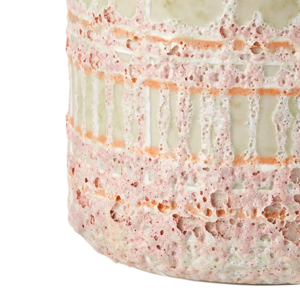 Inspired by an aerial view of rice fields, the geometrically rich patterning on the Riso Vase Set is carved into the ceramic surfaces of the vases. The blend of different colors where the lines are scraped away gives these matte vessels an antiqued feel.