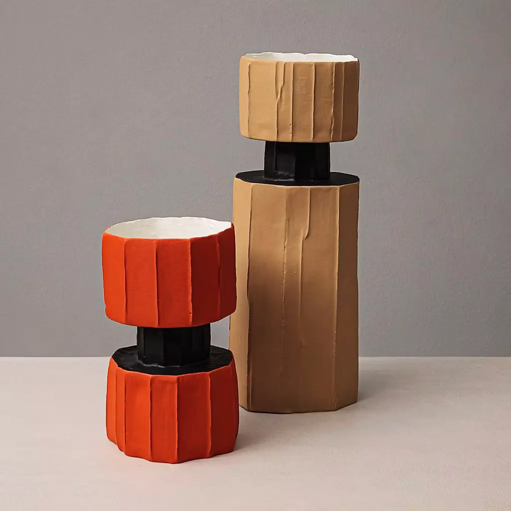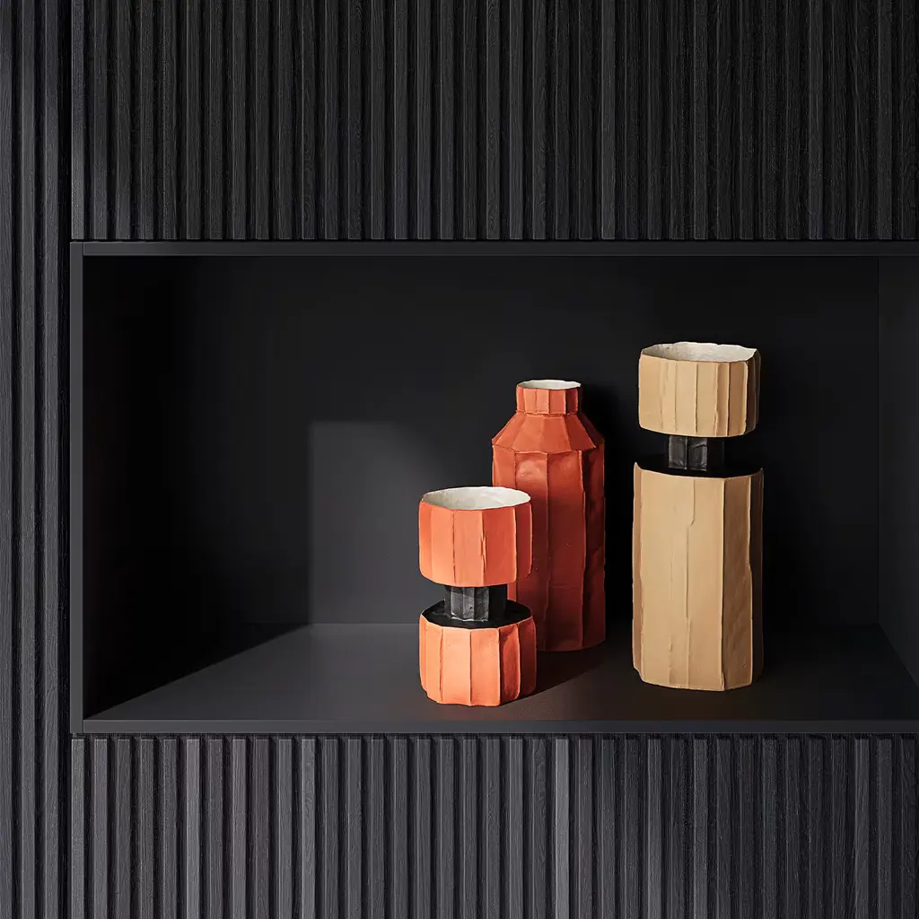 Every one of Paola Paronetto’s creations is unique. From her exclusive clay mix, to the opaque and natural colour finish, each piece is completely handmade. Slight variations in shape, colour and size are to be considered a guarantee of authenticity and value. They are finished with non-toxic satin-finish enamels. Although very rarely, it is possible for them to leak after long periods of exposure to water. It is therefore advisable to test their water resistance before using them on delicate surfaces. They should not be used as dining utensils. The white pieces can be washed with water or sanitizing products, whereas the coloured pieces must be treated more gently and cleaned with a feather duster or a soft cloth, dry or moistened very slightly with water.