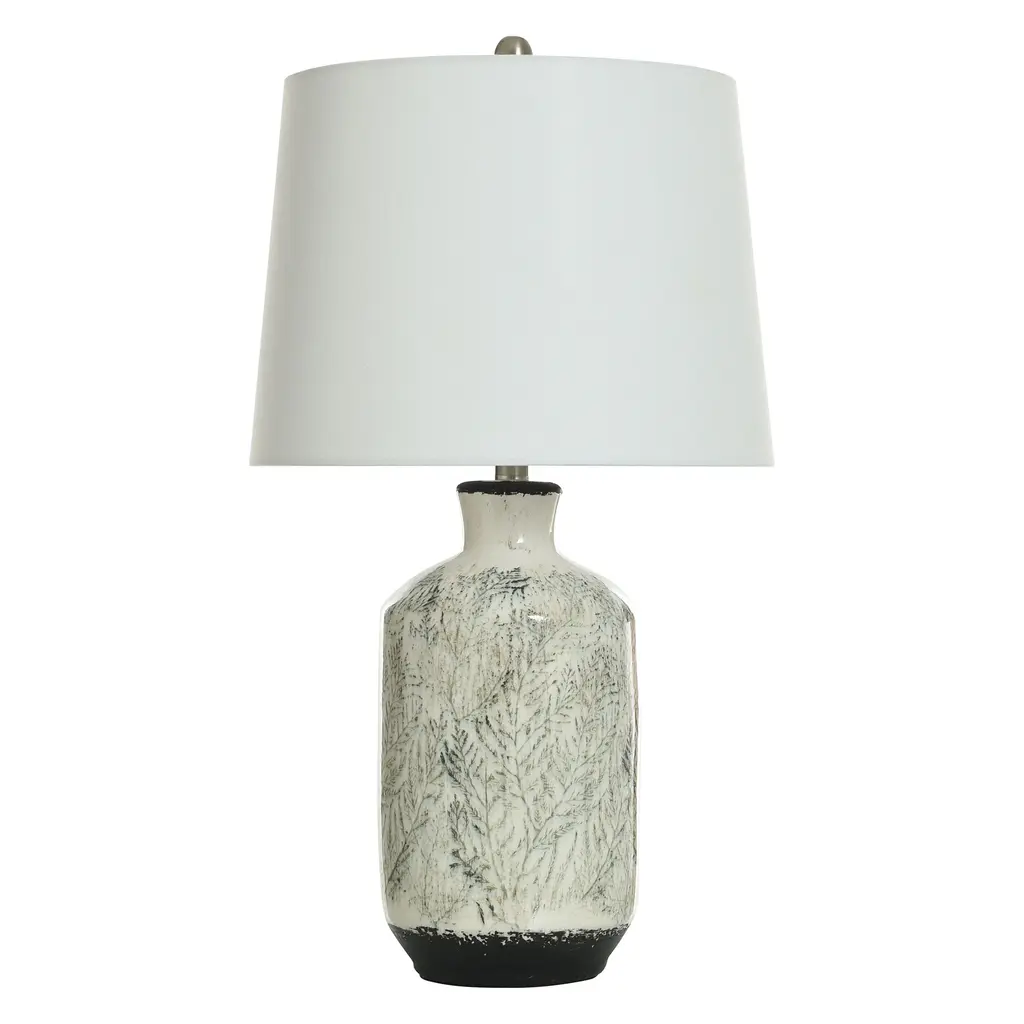 Introducing the Soline Table Lamp, an artful addition that showcases balance and presence. Its distinctive body is fashioned from ceramic, flaunting a gorgeous finish that exudes a sense of subtle sophistication. This finish not only brings a touch of serene elegance to any room but also harmonizes with different interior palettes. Cradling the light, its crisp shade crowns the lamp, casting an ambient glow that is both soft and ample for your lighting needs.