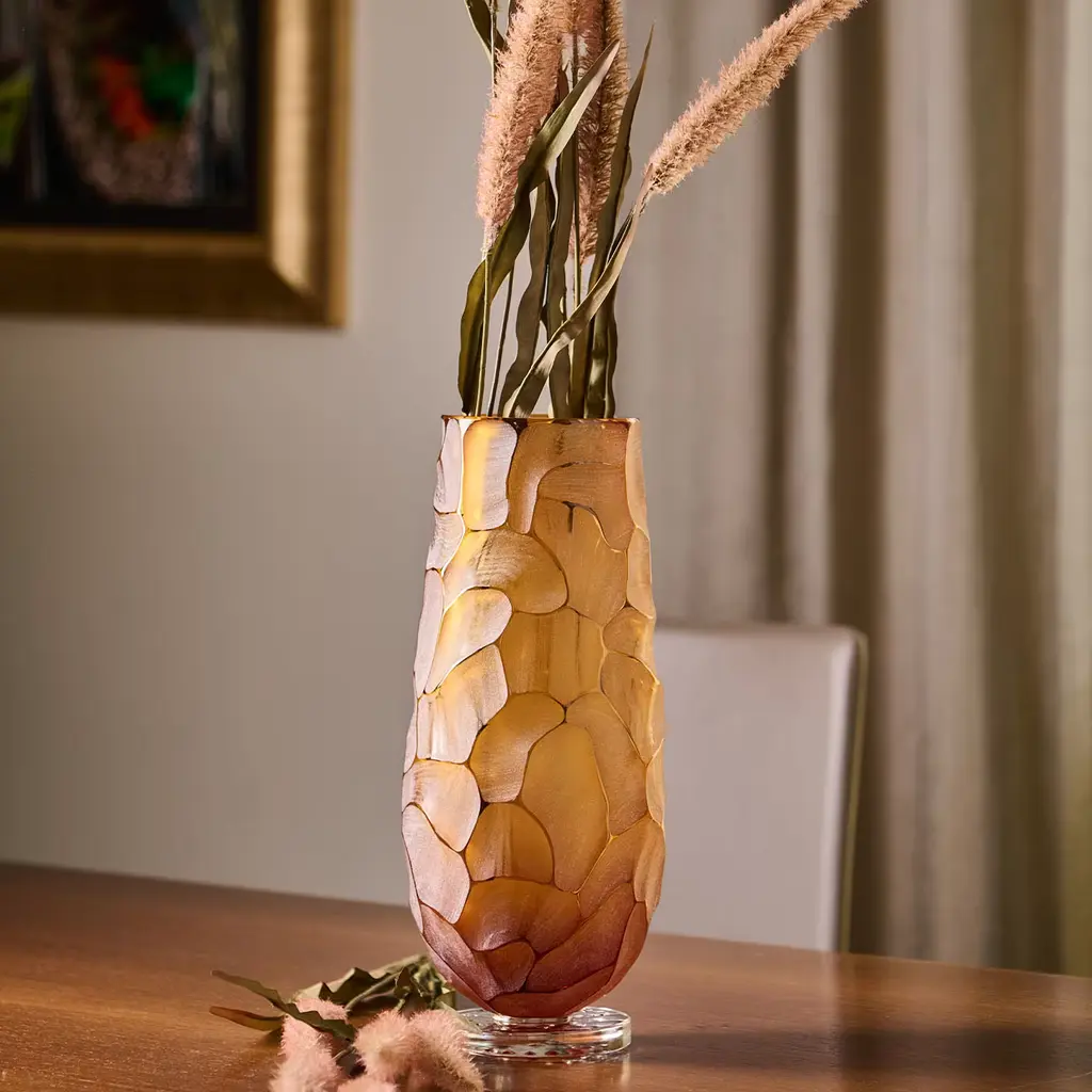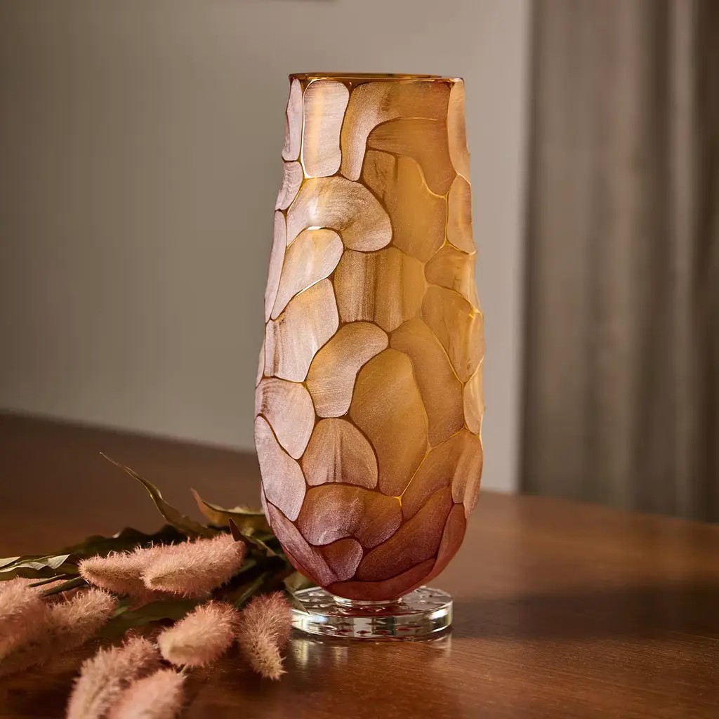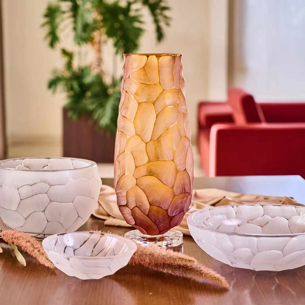 The mutation of form is inspired by historical primordial memories that have consolidated the Native leadership. The marmoreal lightness of the engraving remains fluid in the transparency created, the light goes through the shape and gives life to the object. A single emotion is perceptible by the eye and the touch.