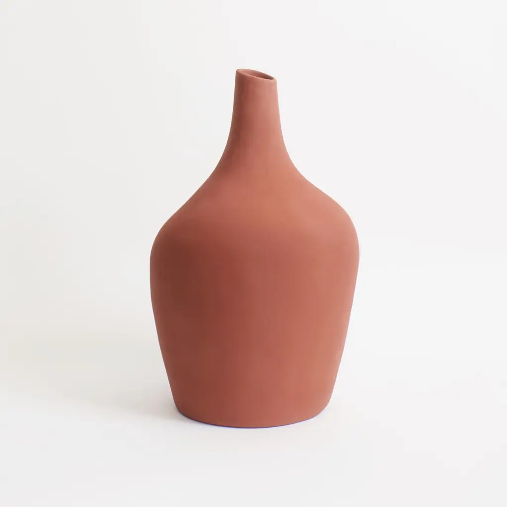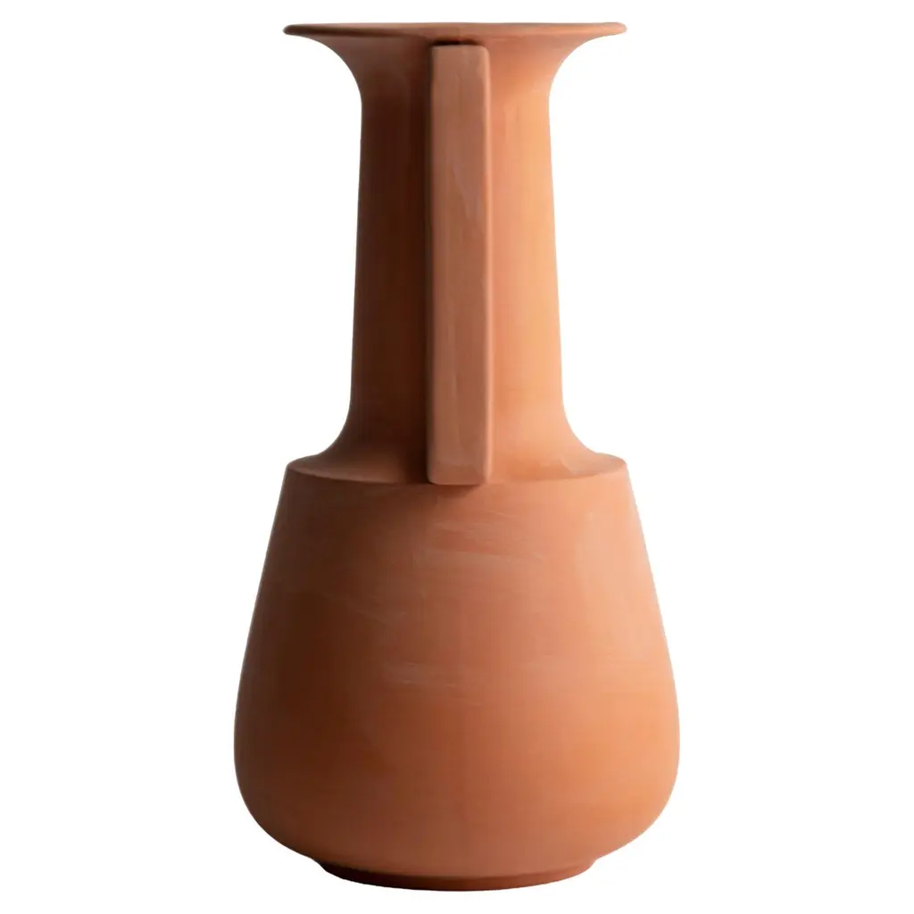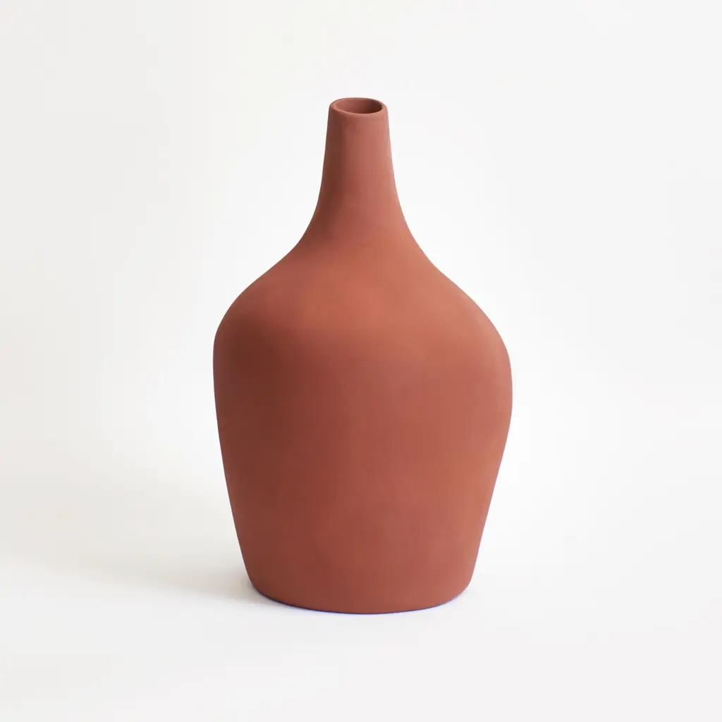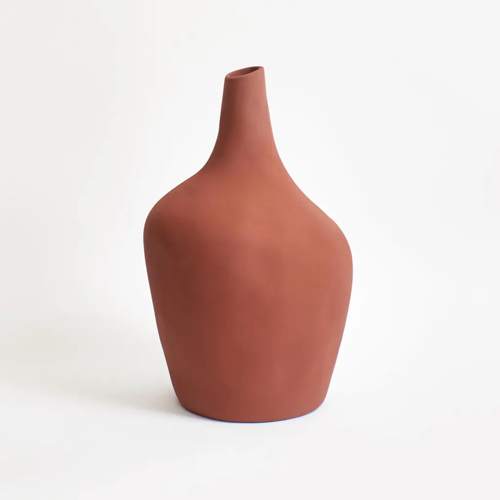 The Sailor vase by project 213A has been designed in 2020 and was launched in 2021.This glaze has a rough almost sandy texture and comes in a soft brick colourHandmade in Portugal by local craftsmen.This stoneware vase is sculpted by hand and has a purposeful uneven silhouette.The handmade process gives it a subtle and intimate uneven touch. Hallmarked with a discreet P 213A embossed logo.The inspiration:A bottle of rumOne more sip, where has it goneI recall essenceThe sailors vase commemorates the pirates favourite drink, leaning uneven like a bottle in the eyes of a drunk.DeliveryWe provide complimentary free delivery for customers of the European Union on orders over 150EUR. For those purchasing outside of Europe shipping fees will be added at checkout.?ReturnsYou have 14 days from receiving your order to arrange your return (see our return policy).Colour : Scrambled EggsHeight : 39 cmWidth : 22 cmVolume : ca 8,5 LWaterproof.