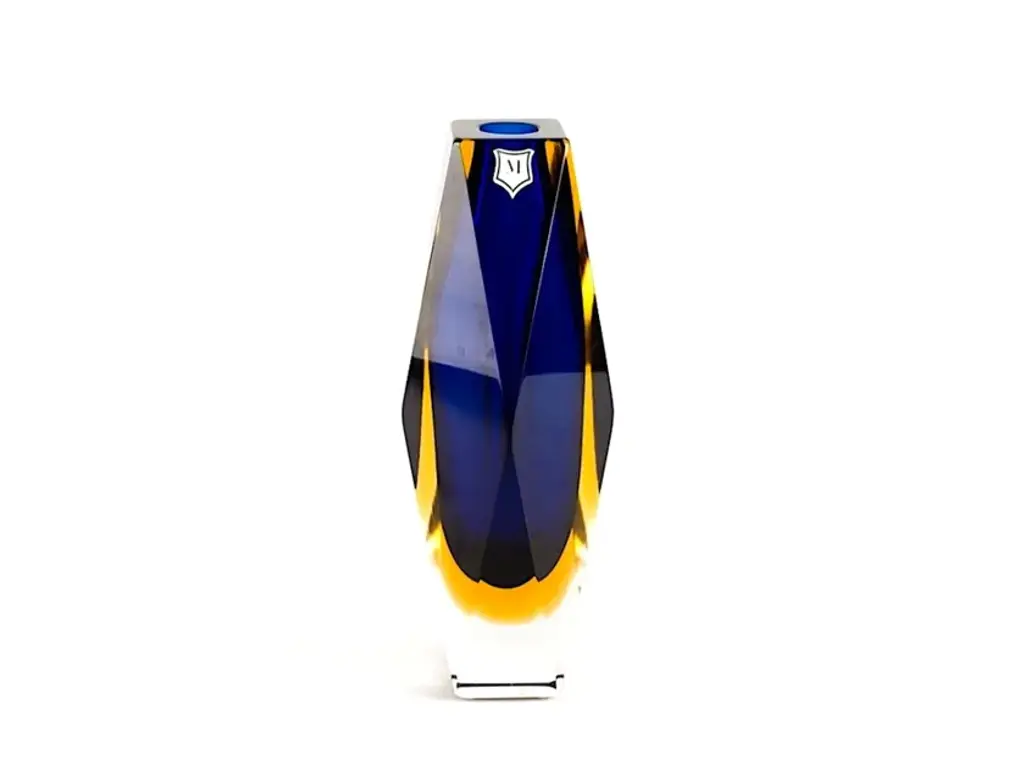 SAINT MARK is a murano glass modern blue amber vase, inspired by the facade of the Basilica of Saint Mark in Venice. A Murano glass vase that completes any home space decoration of your home. Imagine it in your favorite room!These decorative vases are the result of the centuries-old artisanal tradition of Murano blown glass. But what happens when tradition meets innovation? These marvelous glass artworks serve as the perfect bridge between the tradition of Murano glass craftsmanship and the innovation of modern Italian design. All our products are artisanal and of the highest production quality. Non-substantial variations in shape, size, color, and/or minor imperfections are inevitable and are typical of manual glasswork, highlighting the artisanal craftsmanship.