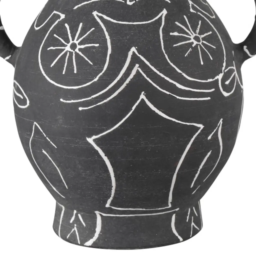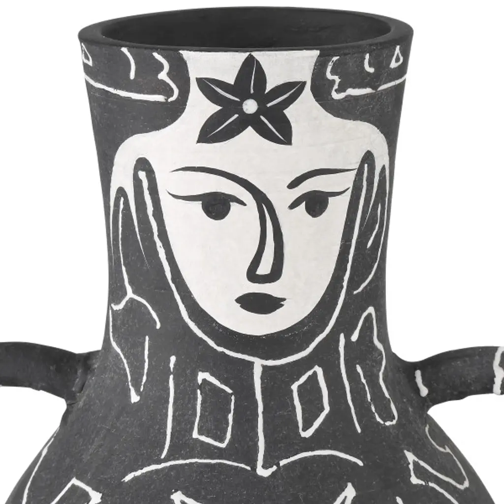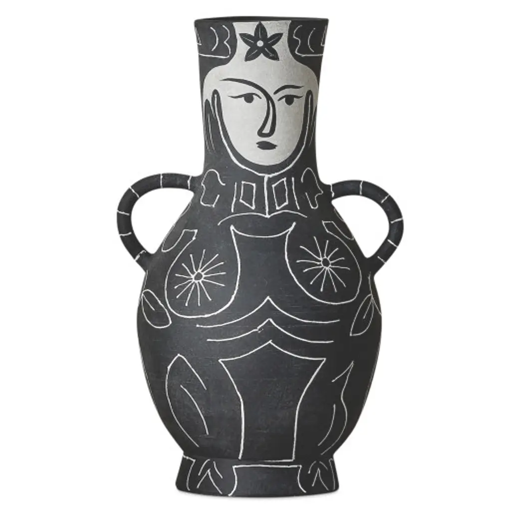 Inspired by the development of 20th-century art pottery during the 1940s, the Saint-Paul-de-Vence Vase collection is a nod to the great experimentation going on at the time. This interpretation of that burgeoning creativity is made of terracotta that has been glazed in a matte black, over which the whimsical figure has been hand-painted in white.