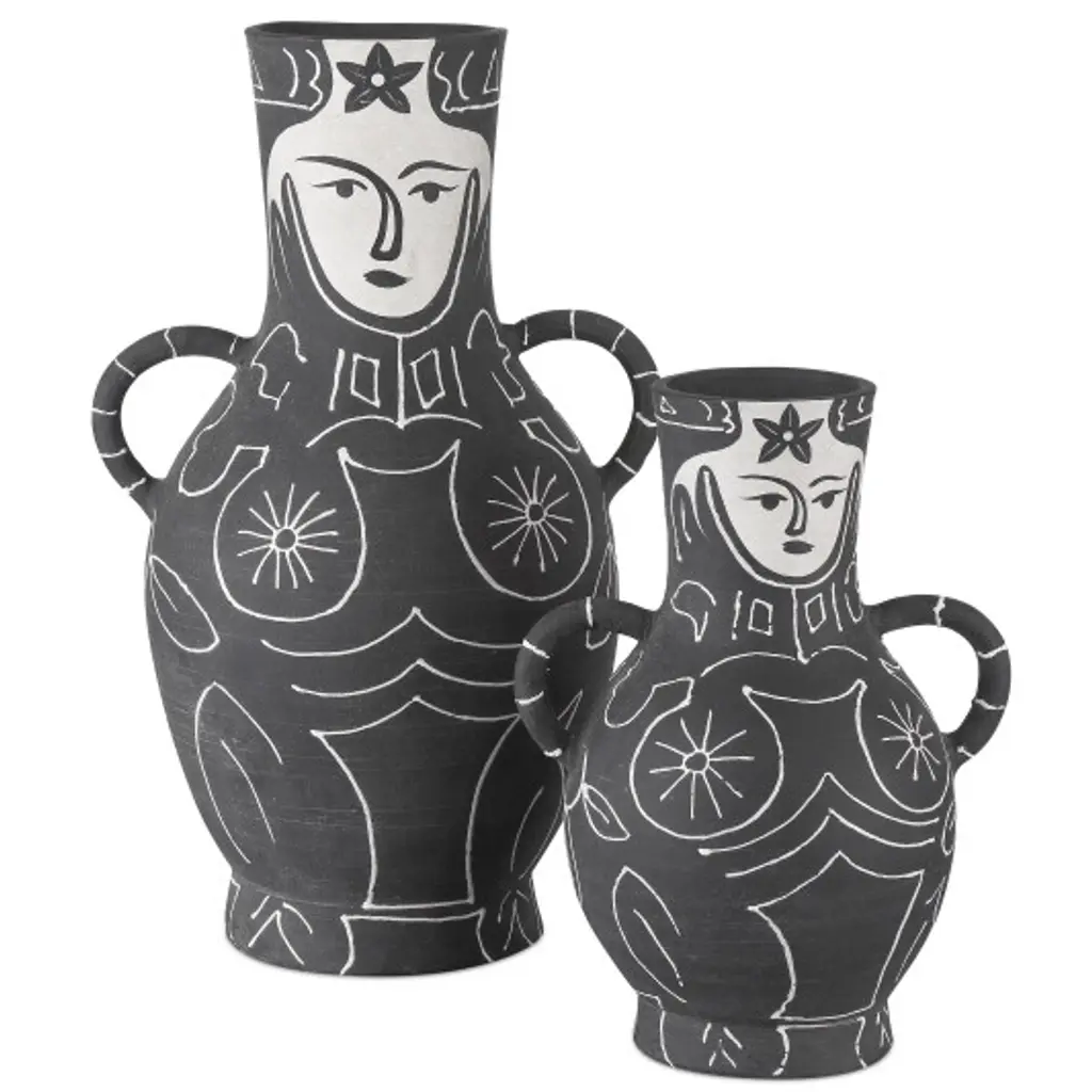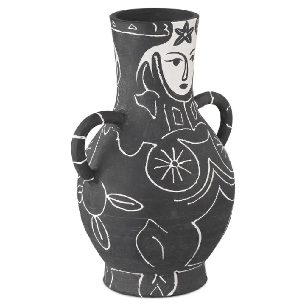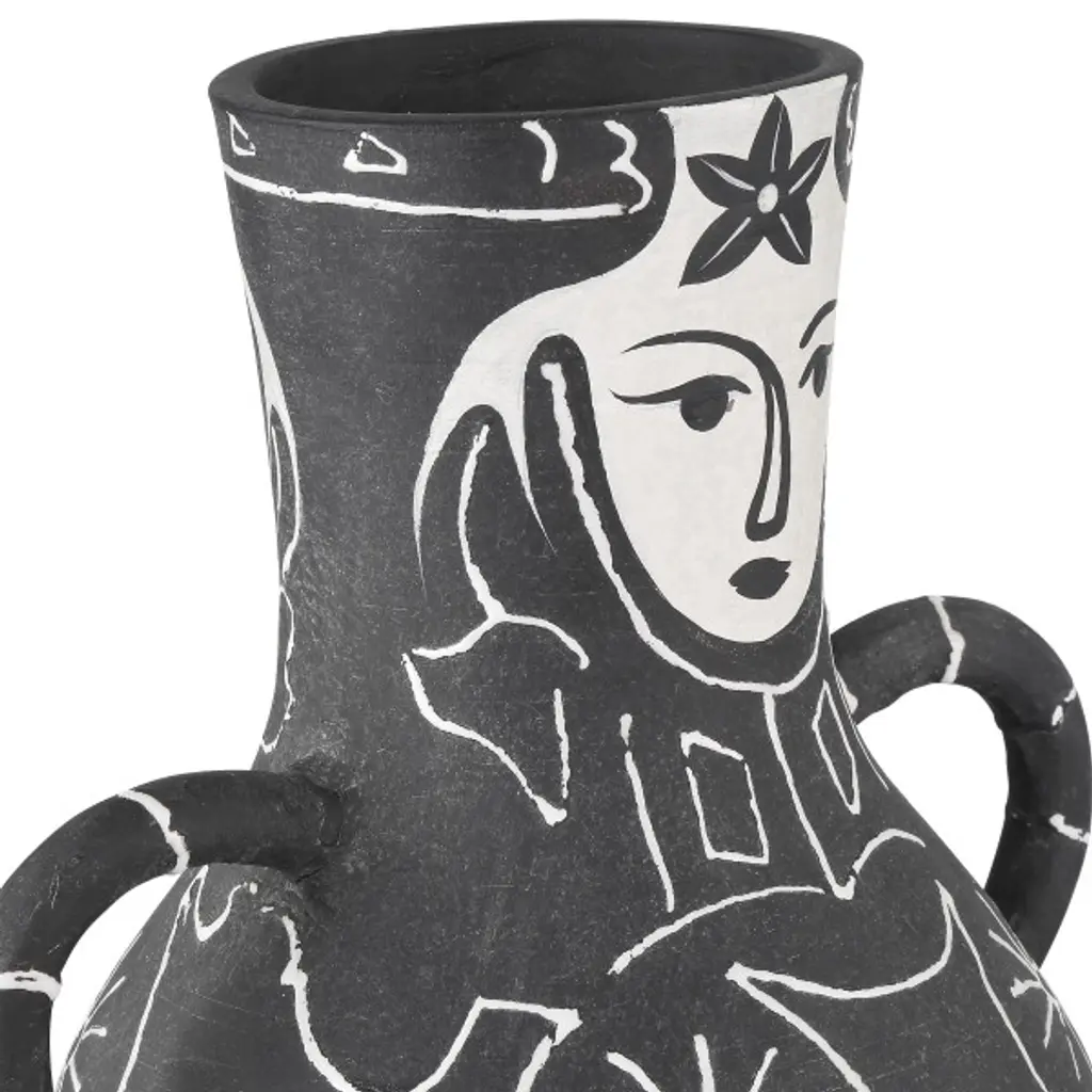 Inspired by the development of 20th-century art pottery during the 1940s, the Saint-Paul-de-Vence Vase collection is a nod to the great experimentation going on at the time. This interpretation of that burgeoning creativity is made of terracotta that has been glazed in a matte black, over which the whimsical figure has been hand-painted in white.