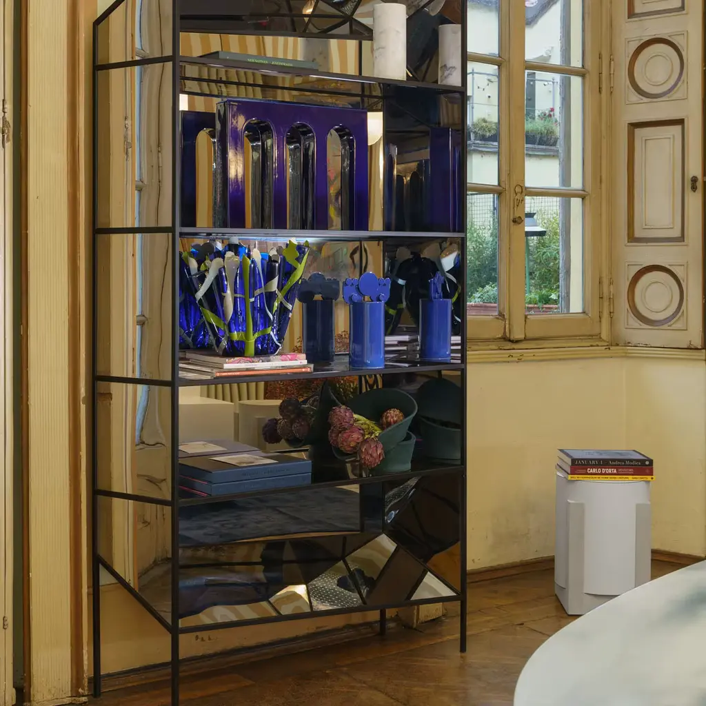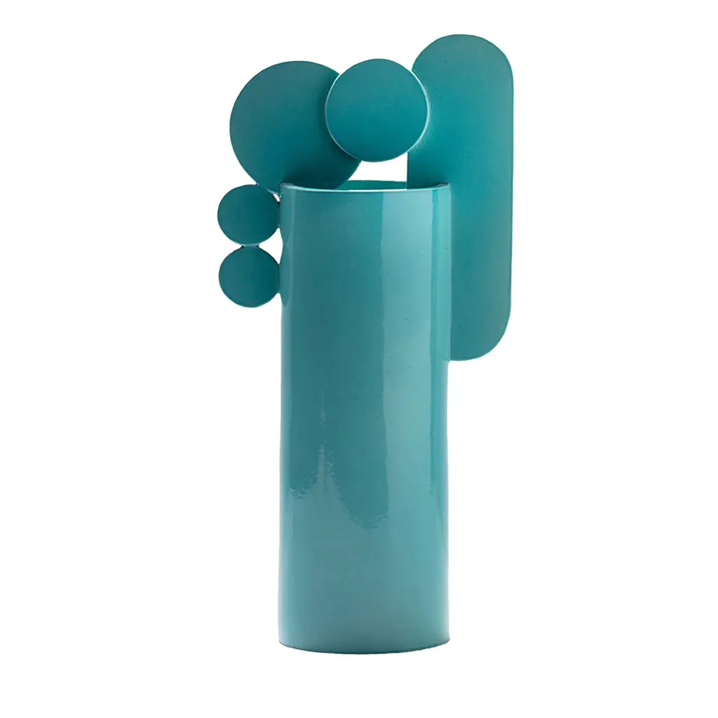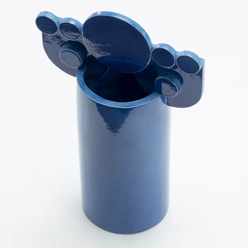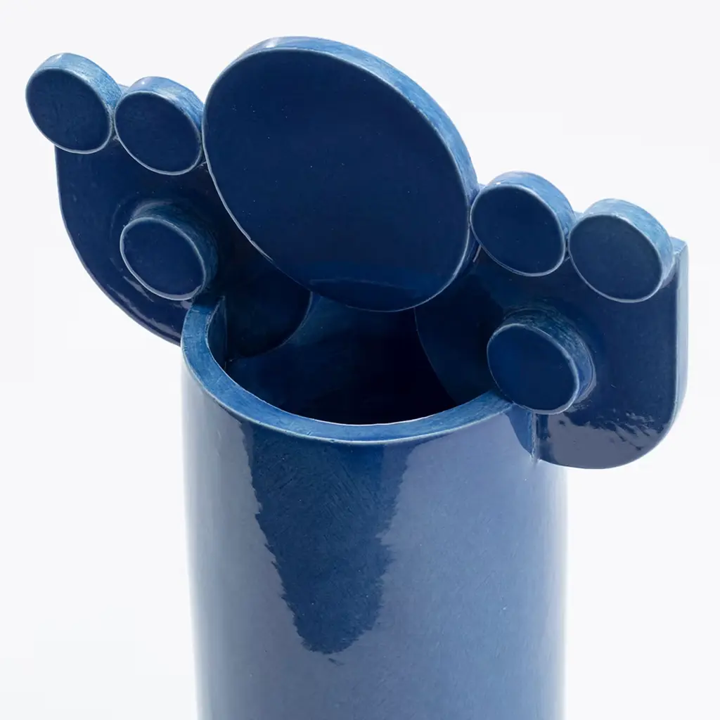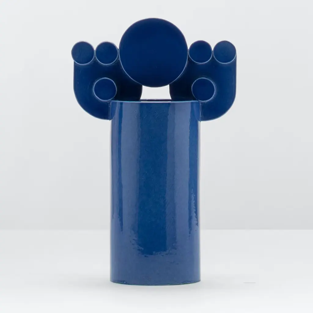 Inspired by the movement of waves hitting the shore and disappearing in the sand, this cobalt blue vase is an abstract transposition that plays with the balance of geometries. The design belongs to the Bubble Family Collection, a series celebrating the Mediterranean culture and its symbols through endless combinations of cylinders, circles, and arches. A unique objet d'art that will leave an impression both as a standalone piece or in combination with other elements from the same collection.