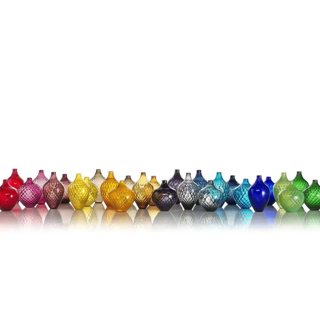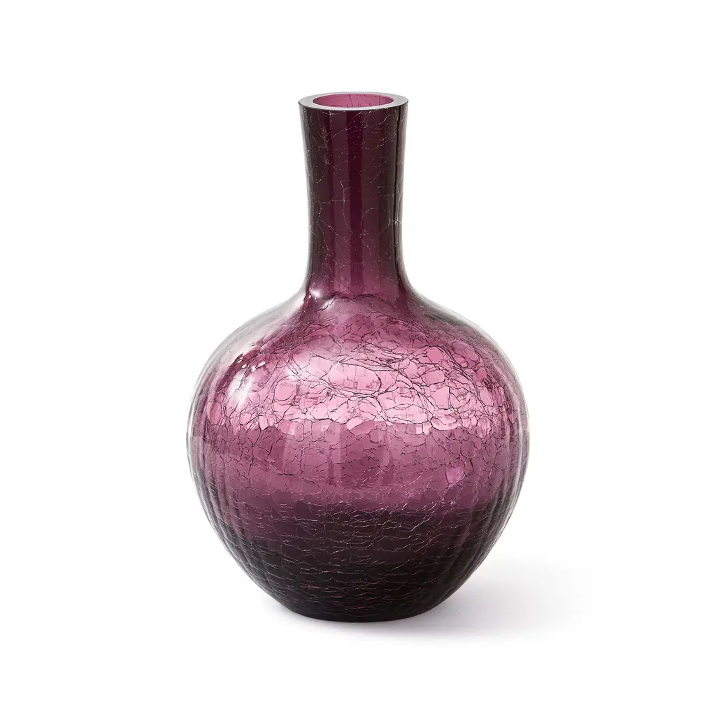 Marked by a bulging volume tapering to a narrow neck, this plum decorative vase belongs to the Samarcanda Collection of precious mouth-blown Murano glass pieces. Its distinctive balloton design - a milestone of Muranese tradition - gives it a superb texture that can be appreciated both with eyes and touch. Multiple size and color options are available in the Artemest catalog.