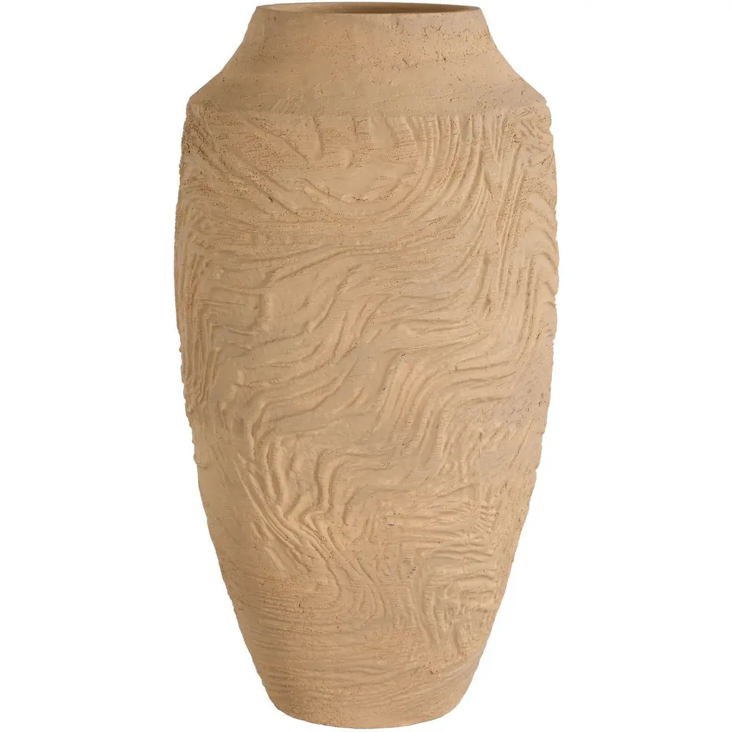 Handcrafted From Terracotta, This Vase Features An Organic Texture Reminiscent Of Flowing Sand Dunes. Its Earthy Tones And Sculptural Form Make It A Striking Accent Piece, Perfect For Adding Warmth And Artistry To Any Space.