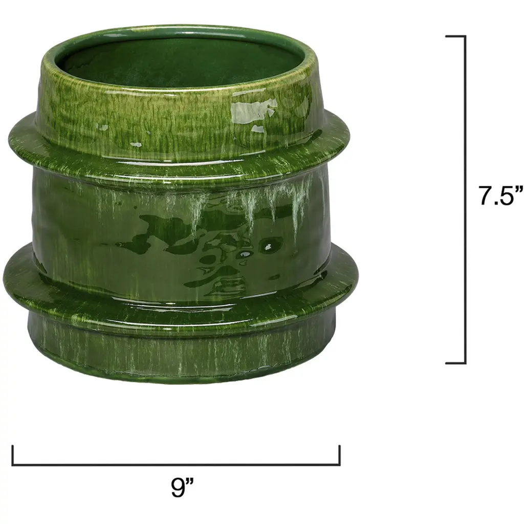 Inspired by outer spaces most celebrated rings, this sleek vases shape is perfected with an unexpectedly cheerful finish. The bright, grass green grass-green reactive glaze evokes thoughts of spring and renewal, and due to the unique process used to create it, no two will be identical. If you are looking to bring some bold, beautiful, delightful color into an otherwise neutral home, this is it