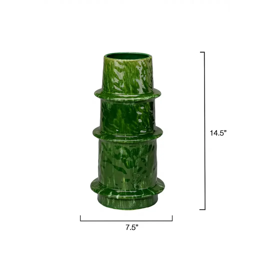 Inspired by outer space’s most celebrated rings, this sleek vase’s shape is perfected with an unexpectedly cheerful finish. The bright, grass green grass-green reactive glaze evokes thoughts of spring and renewal, and due to the unique process used to create it, no two will be identical. If you are looking to bring some bold, beautiful, delightful color into an otherwise neutral home, this is it!