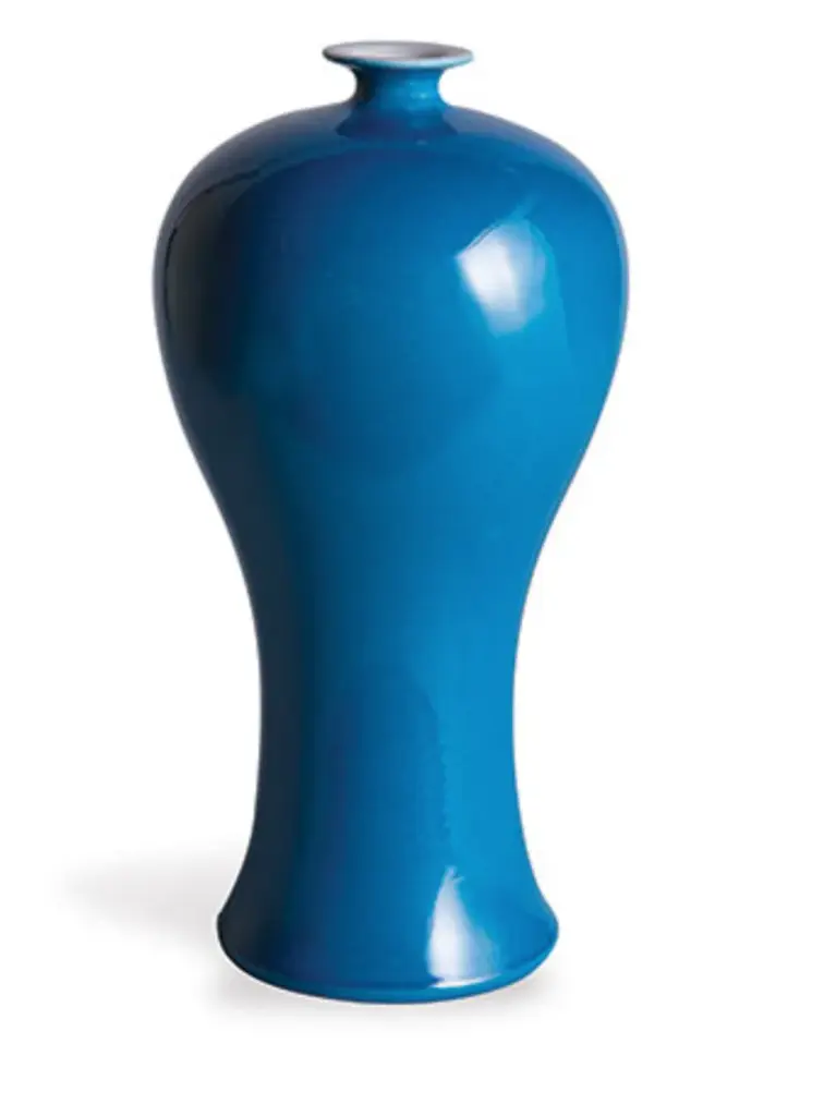 The plum vase is a timeless classic porcelain shape vase. Rich in color in vibrant emerald green, the vase is scaled for your bookshelves, mantles and wall shelves.