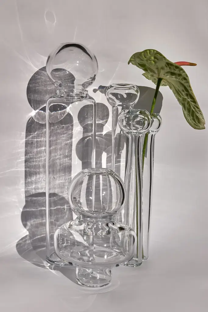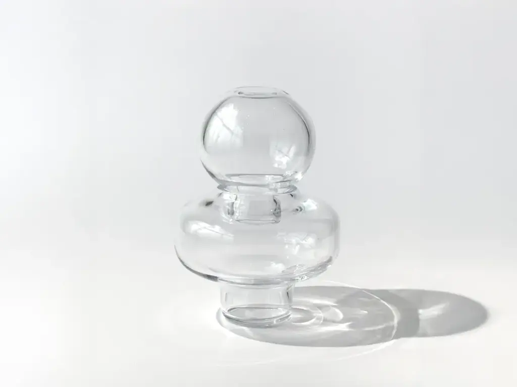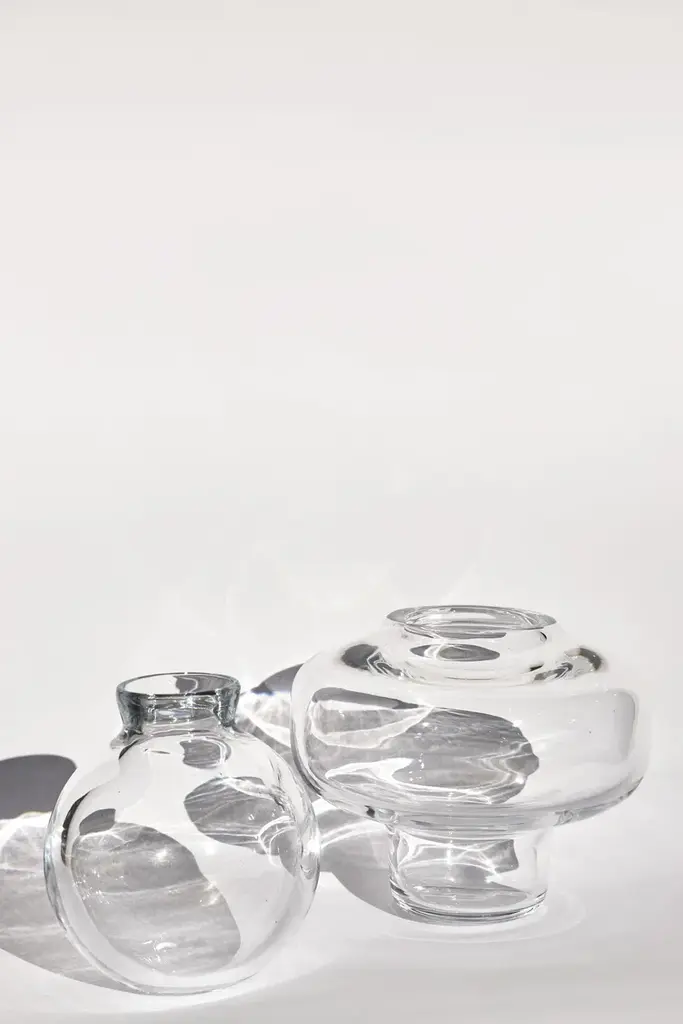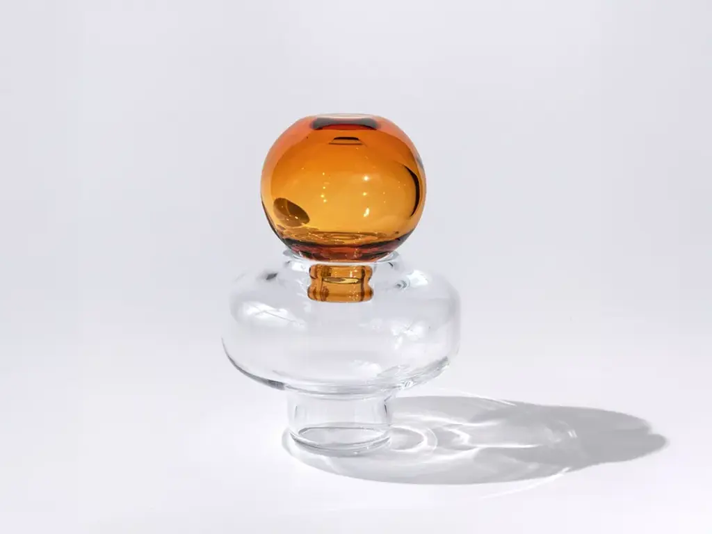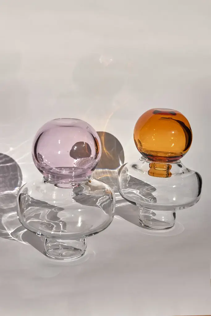 SCALEA is a blown glass vase.It is a combination of two vases, serving as both a sculptural crystal piece and a flower vase. The rounded cap, thanks to its slightly flat top, becomes a vase itself, in order to create the perfect flower ensemble. A crystal piece artfully created with the traditional hand - blowing technique. The pureness of the crystal reflects the light illuminating the interior which is placed in. Variations in color or in small details are the result of the craftsmanship of this article and make each piece unique.Featureshand-blown and shaped in Italycolor: transparent or transparent + ambermaterial: pure lead crystal glass