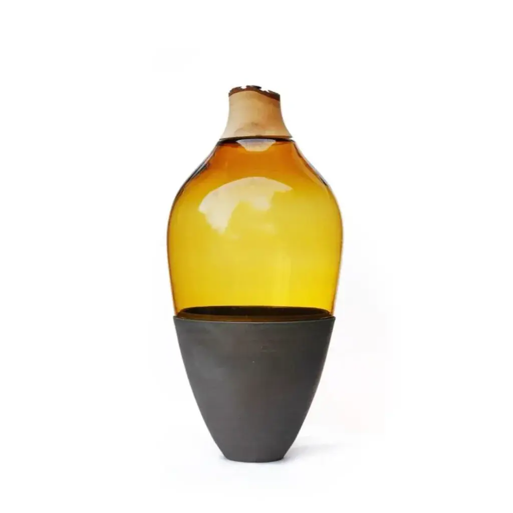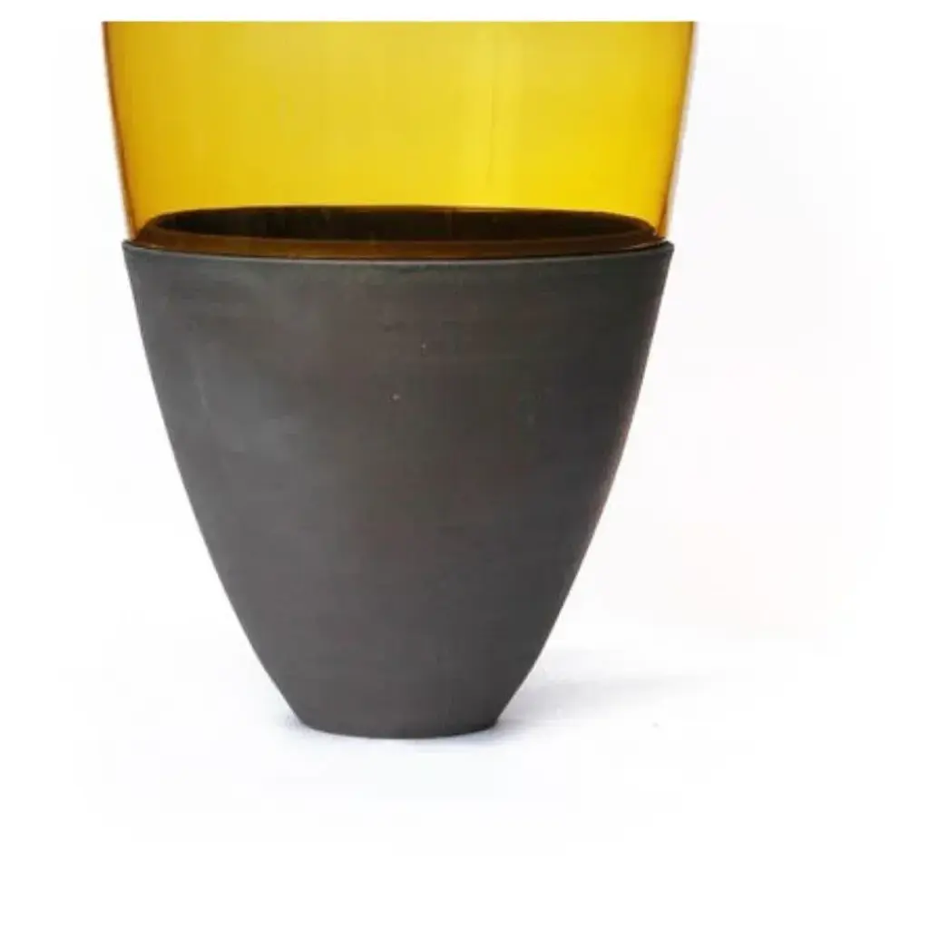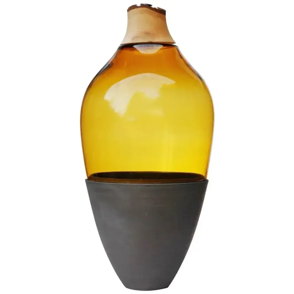 Sculpted Vase In Ambre Blown Glass And Ceramic By Pia Wüstenberg