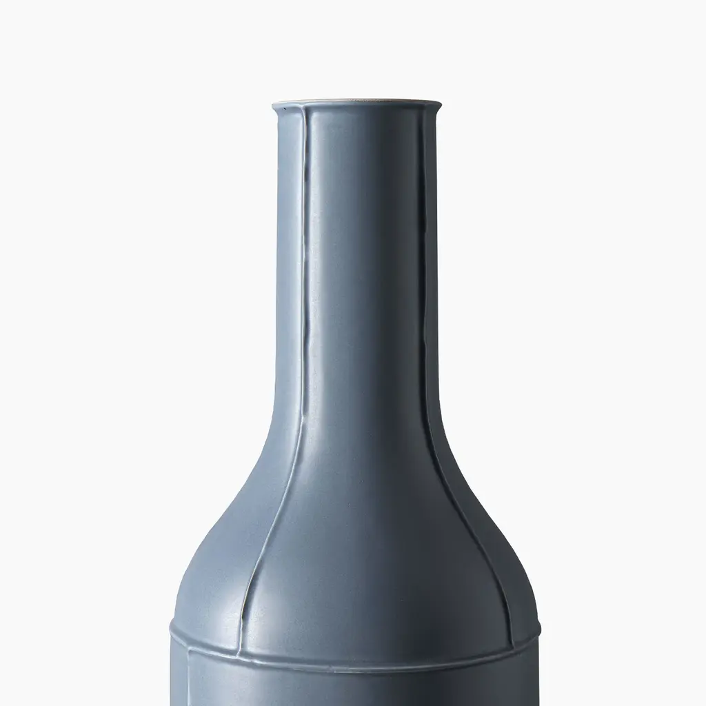 Showcased a the 2019 Milan Design Week, this charming, bottle-shaped vase is crafted using first-rate ceramic consequently enameled in a relaxing, matte tone of azure. Thin, perpendicular seams resulting from the mold-casting process rise from the smooth outer surface to create a subtle yet captivating textural twist.
