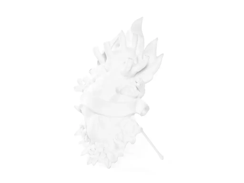 Holy Love in Bloom is a porcelain vase.The great success of LOVE IN BLOOM continues with a new version that celebrates the tradition of the Sacred Heart. The iconic shape is now adorned with flowers, flames, and tattoo-inspired ribbons. A new way to celebrate love and self-expression: customize it with included alphabet decals to write a name, a dream, or a cherished ideal.Material Fine PorcelainColors: white