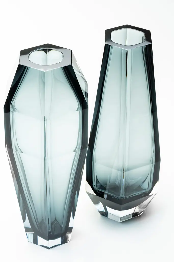 Set of 2 Gemello and Gemella vases by PurhoDimensions: D15x H40 cm eachMaterials: GlassOther colours,finishes and dimensions are available.Purho is a new protagonist of made in Italy design , a work of synthesis, a research that has lasted for years, an Italian soul and an international character, thematic collections of Murano glass objects , designed by great designers, made by great glass masters.Purho expresses the identity and the original vocation of design: to create “fairytale objects ”, vases, lights, glasses and other glasses capable of living forever in space and time in a correct, magical and ultra-functional way.Purho was born from an untouchable, divine concept-word, purity, contaminated by material factors, earth, air, fire, water, enriched by the human factor, that h which indicates humanitas , i.e. transience, perfection of imperfection, uniqueness.Purho is the materialization of an aspiration , a tension towards imperfect perfection, that is, a radically, profoundly human drive.