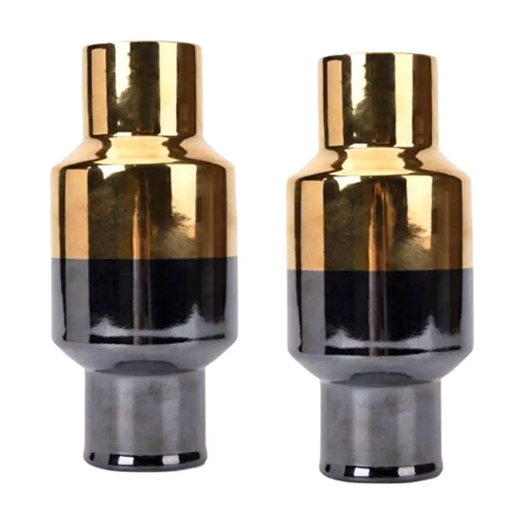 Set Of 2 Gold And Black Tall Vases By Wl Ceramics