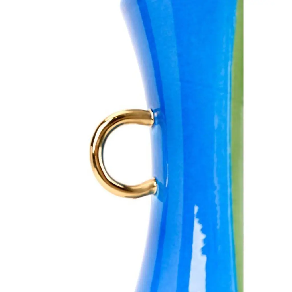 Set Of 2 Green And Blue Vases By Wl Ceramics