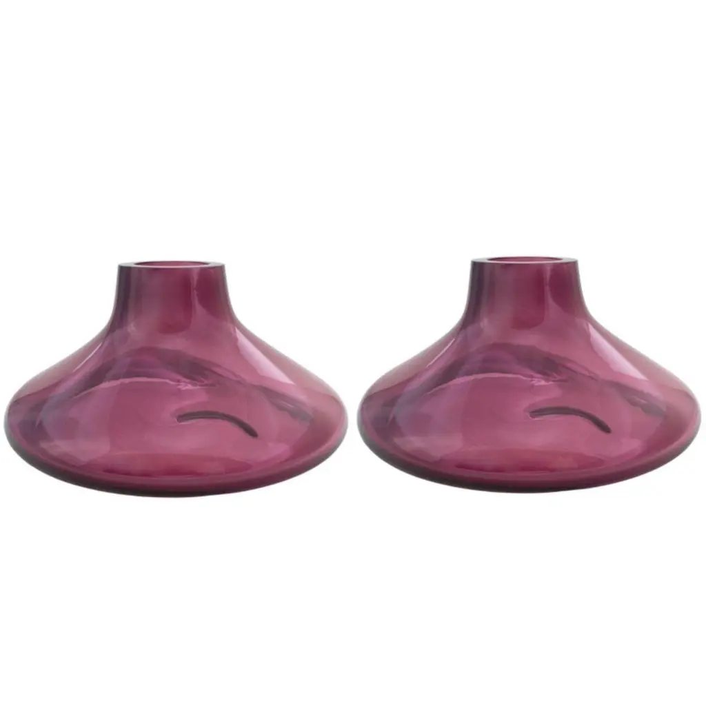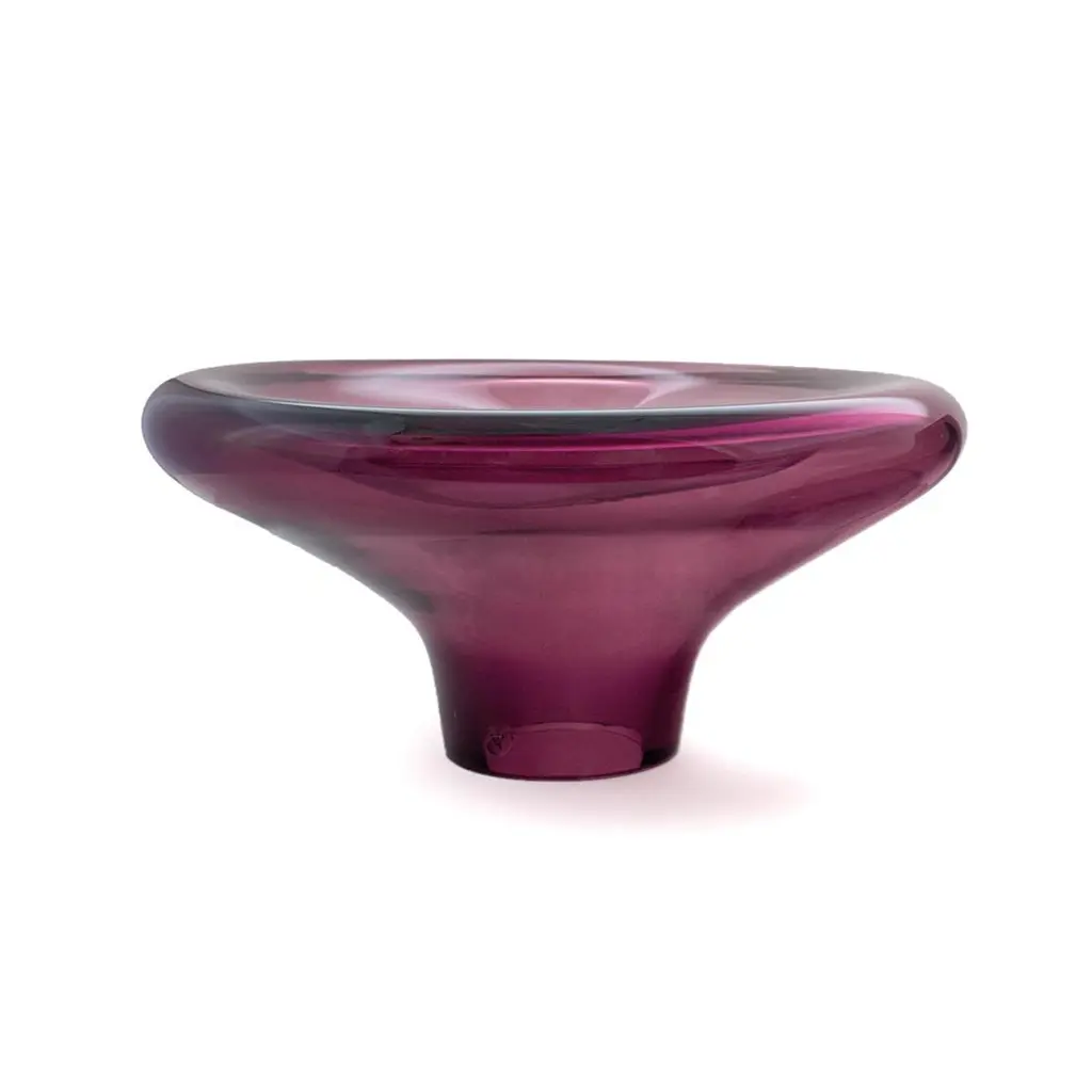 Set of 2 Makemake Purple Iridescent L Vase + Bowl by Eloa.No UL listed Material: GlassDimensions: D40 x W40 x H25 cmAlso Available in different colours and dimensions.Makemake is reminiscent of Jupiter‘s ring. The object was designed with a double functionality and can be used as a vase as well as a fruit bowl. When in use, the sublime and artistic form is reinforced by a flower and fruit arrangement. The crater-like depressions give the mouth-blown glass a presence that blinds the eye.Light objects float weightlessly in space. Fragile, iridescent, timeless. Eloa is amodular lighting system composed of unique handcrafted glass pieces. Select from a variety of hand-blown forms, which are one of a kindin shape, size andcolor - unique.Solitary or in constellation, the Eloa lights create individual light concepts andassociate with star constellations. Each glass piece is named after a star or a planet.They exist as hanging, floor, standing and wall luminaries.Eloa combines the craft of ancient glassblowing with a simple, yet distinct design.In order to achieve the large size of the glass objects and working without forms, it takes a high level of refined craftsmanship and skill performed by only a few master glassblowers.