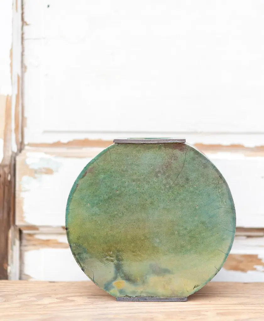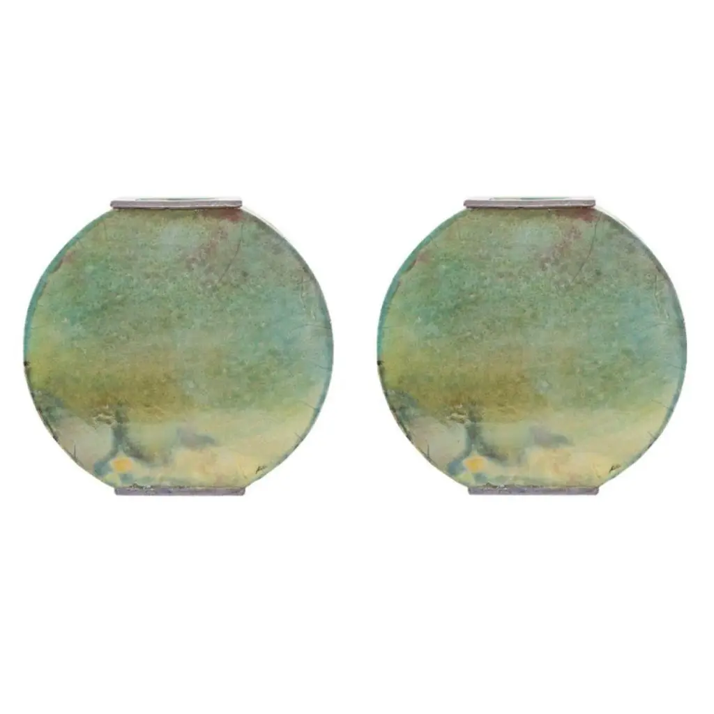Set of 2 green vases by Doa Ceramics. Dimensions: 3.5".Materials: ceramic. Technique: hand-crafted. Freeform. Glazed.Also available in sizes 6".