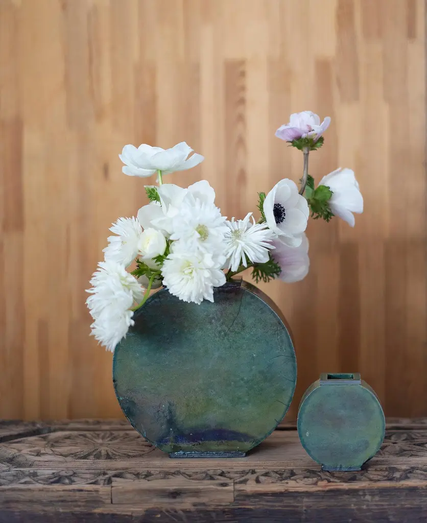 Set Of 2 Small Green Vases By Doa Ceramics