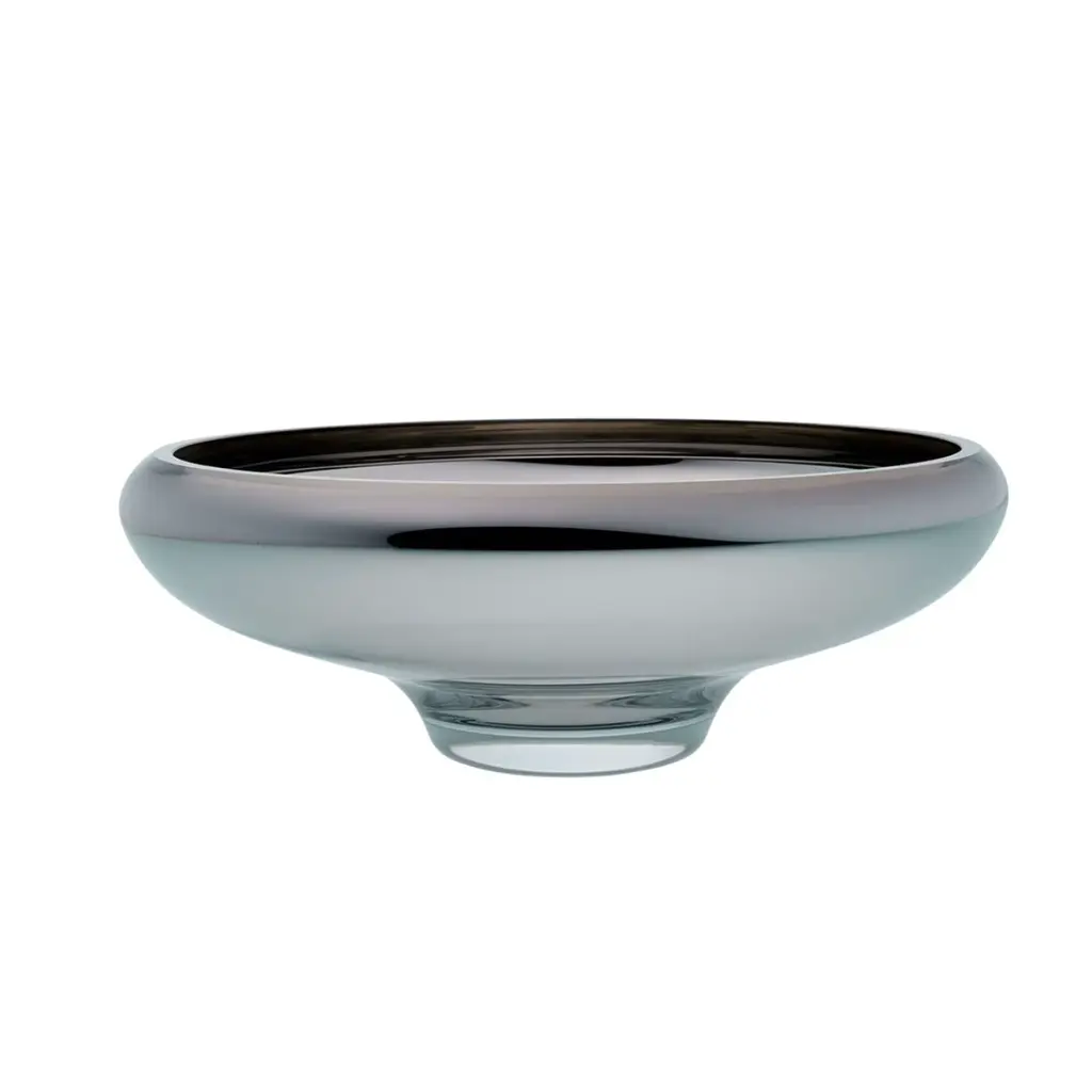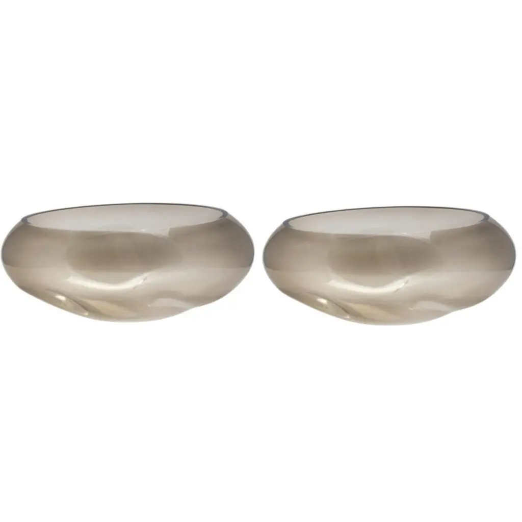 Set of 2 Supernova I silver smoke M bowl + vase by ELOANo UL listed Material: glassDimensions: D 24 x W 37 x H 17 cmAlso available in different colours and dimensionsSUPERNOVA is a rare and magical visual phenomenon that manifests itself as a quick brightness. Exploding stars are the cause of this beauty in nature – and at ELOA. SUPERNOVA was developed after a lucky accident led to the falling of a glass globe. Once the cracks were cut off, new opportunities and functionalities were discovered.Light objects float weightlessly in space. Fragile, iridescent, timeless. ELOA is amodular lighting system composed of unique handcrafted glass pieces. Select from a variety of hand-blown forms, which are one of a kindin shape, size andcolor - unique.Solitary or in constellation, the ELOA lights create individual light concepts andassociate with star constellations. Each glass piece is named after a star or a planet.They exist as hanging, floor, standing and wall luminaries.ELOA combines the craft of ancient glassblowing with a simple, yet distinct design.In order to achieve the large size of the glass objects and working without forms, it takes a high level of refined craftsmanship and skill performed by only a few master glassblowers.