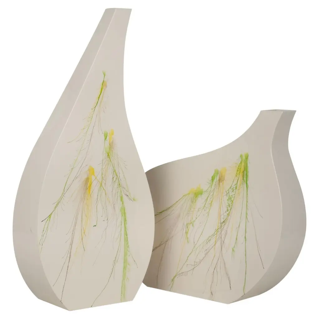 Set of 2 Wooden Decorative Vases Cream, Lusitanus Home Collection, Handcrafted in Portugal - Europe by Lusitanus Home.This beautiful set of 2 Decorative vases is lacquered in high-gloss cream with handpainted designs.Not Waterproof.Handcrafted in Portugal - Europe by GreenappleUnique by design, Crafted by peopleFounded in 2005 by Sérgio Rebola and Rute Martins, Greenapple designs and produces in-house luxury furniture for exclusive customers worldwide.Our own in-house production facility allows us to be obsessed with detail, and gives us the freedom to dedicate ourselves to the most demanding tailor-made and customized work. As Rute designs all the unique pieces, Sérgio assures the high-quality standards through the whole process - from design to production; from production to your home. Fine craftsmanship, whether perfected by experienced hands or state-of-the-art machinery is quintessential in delivering top quality experiences.