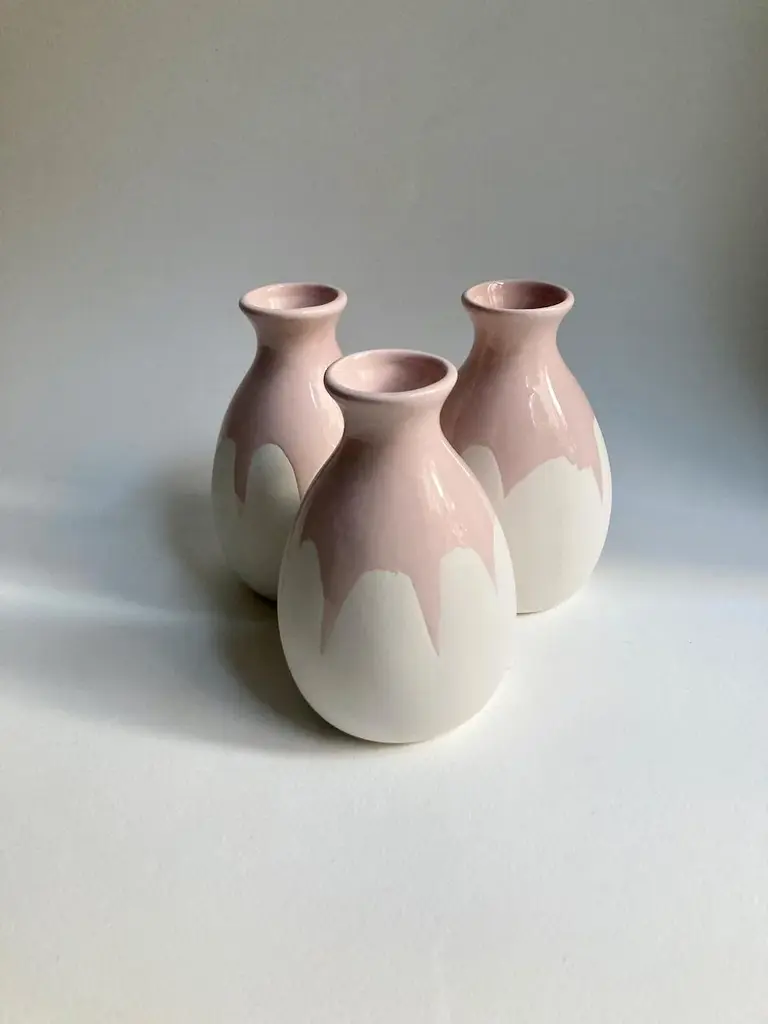 Set Of 3 Isaac Mizrahi Pink & White Pottery Vases, 1990's