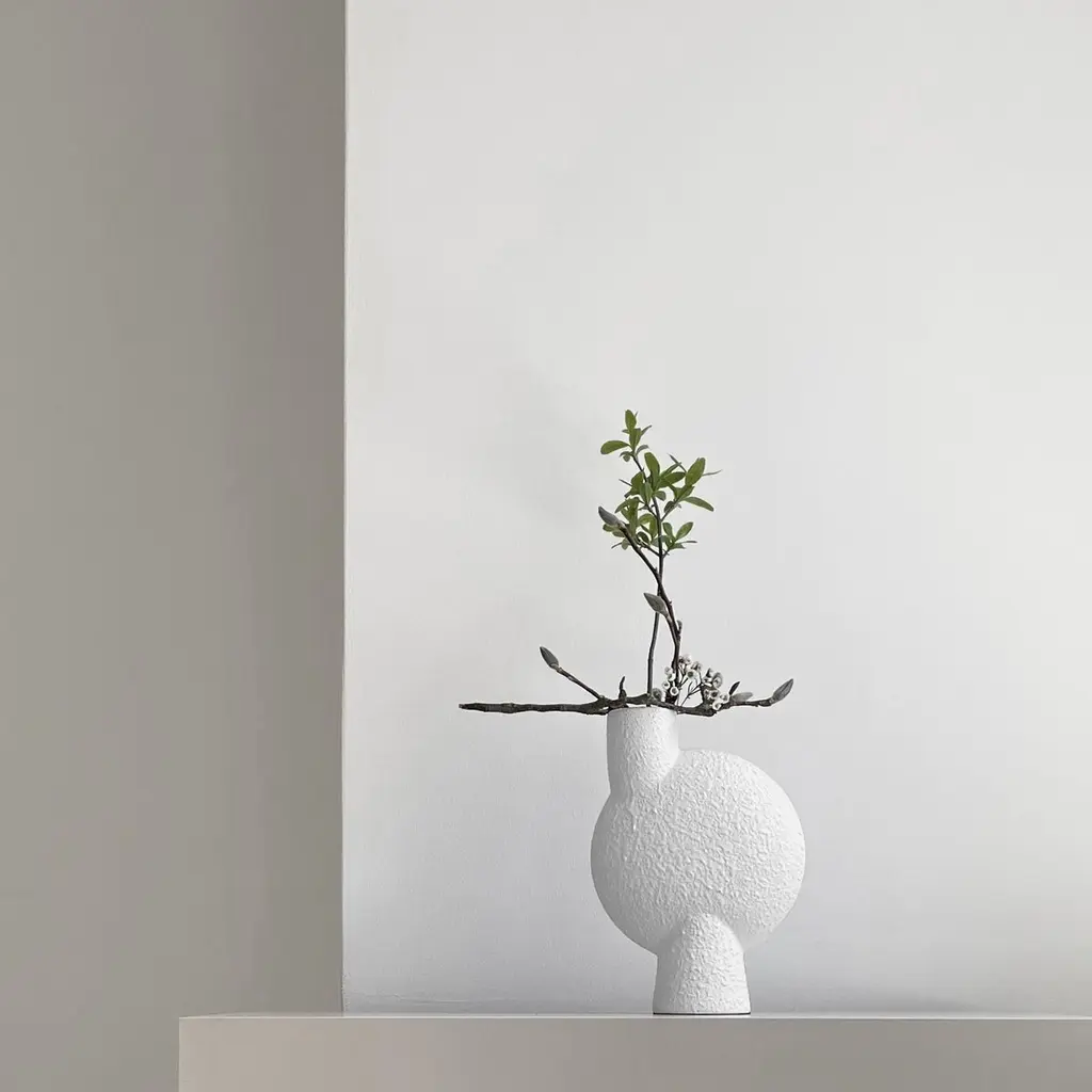 A set of 4 black medio sphere vase bubl by 101 CopenhagenDesigned by Kristian Sofus Hansen & Tommy HyldahlDimensions: L18 / W8 / H26 CMMaterials: CeramicThe Sphere collection celebrates unique silhouettes and textures that makes an impact with the decorative charm of sculptural art. Elegantly sculpted, each vase is finished in intricate ornate detailing. Inspired by ancient Chinese vases, a palette of faded earth tones became the series characteristic appearance. Sphere is also the first ceramic design we developed and quickly it became our signature. The vases are developed in close collaboration with highly skilled ceramist, ensuring the precise contrast between the smooth shapes and sharp edges. Hand glazed natural product therefore the colors may variate.Not waterproof safe.101 Copenhagen is a Danish design brand founded in 2017. With a vision to honor exquisite quality and craftsmanship, the collection encompasses furniture, lighting and accessories in a timeless, yet modern design. With a true passion for materials and refined textures, organic shapes and colours, 101 Copenhagen presents the epitome of classics and must-have novelties for Scandinavian and international interior connoisseurs alike.